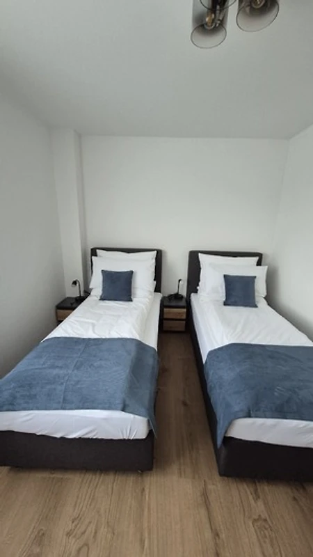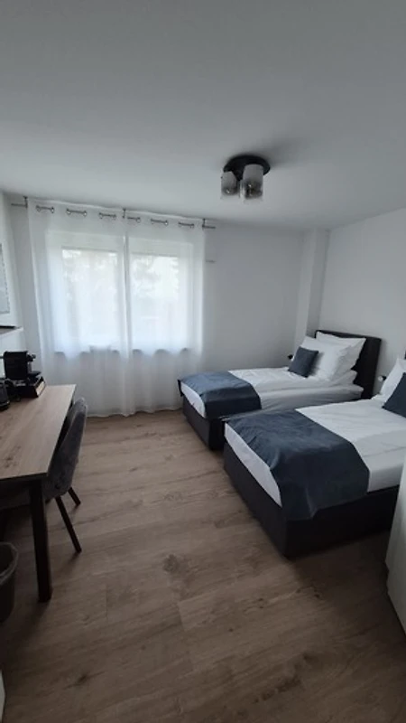 Der Raum ist geschmackvoll gestaltet und mit einem Doppelbett ausgestattet, das bei Bedarf in zwei Einzelbetten getrennt werden kann. Grosse Fenster lassen viel Tageslicht herein, wodurch eine helle, freundliche Atmosphäre entsteht. Für Privatsphäre und Sonnenschutz sind die Fenster zudem mit Rollläden ausgestattet. Das gesamte Zimmer, einschliesslich des Badezimmers, ist mit einer Fussbodenheizung ausgestattet, die überall für zusätzlichen Komfort sorgt.