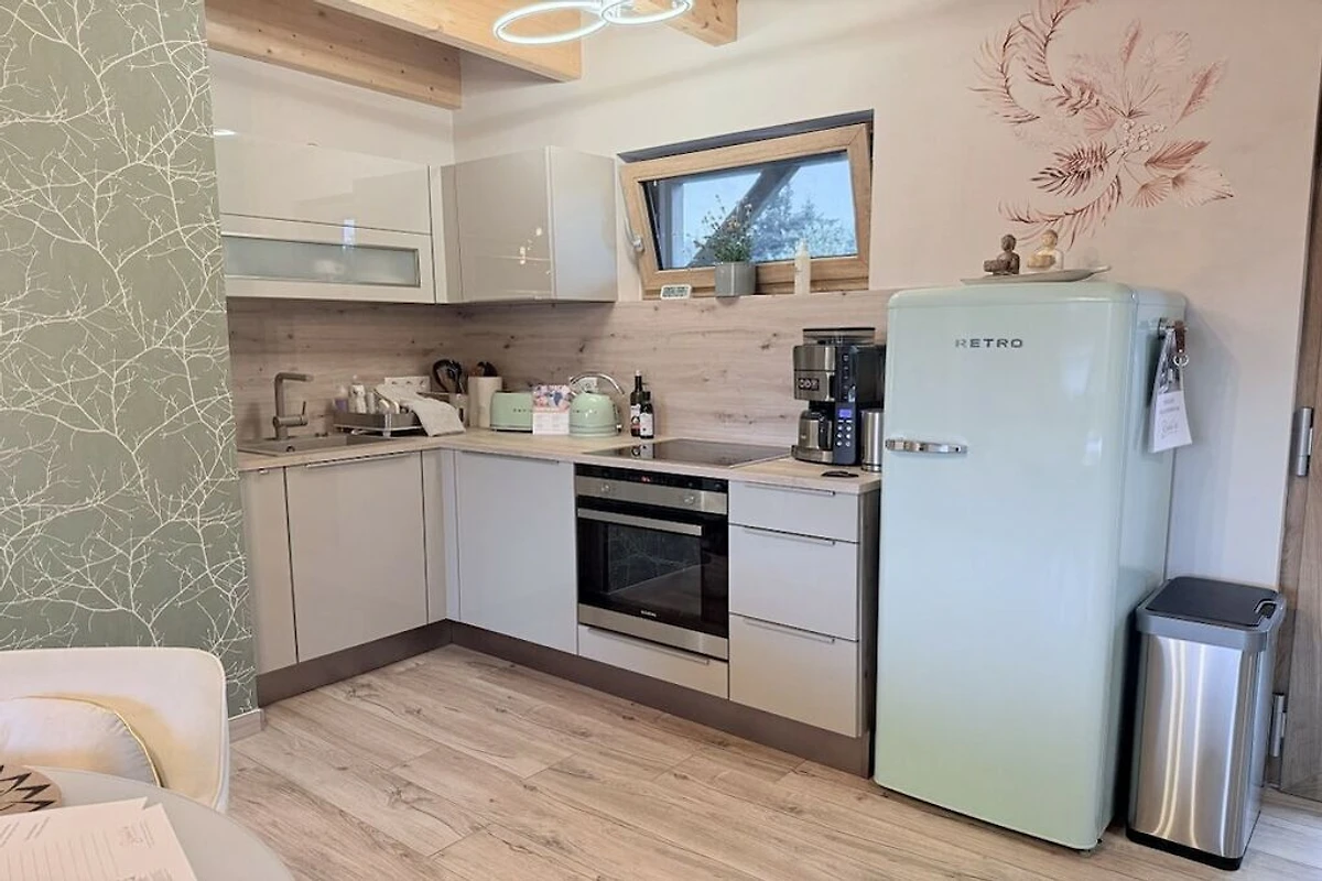 Die moderne, großzügige Küche ist perfekt ausgestattet für alle, die gerne genießen und selbst kochen. Der lichtdurchflutete Wohnbereich lädt mit seiner gemütlichen Atmosphäre zu gemeinsamen Stunden ein – ob mit einem guten Buch, schönen Gesprächen oder einem freudigen Spieleabend.
