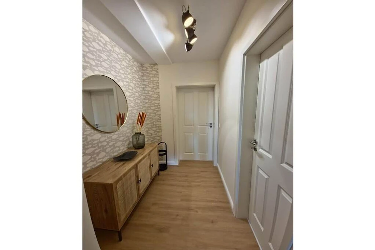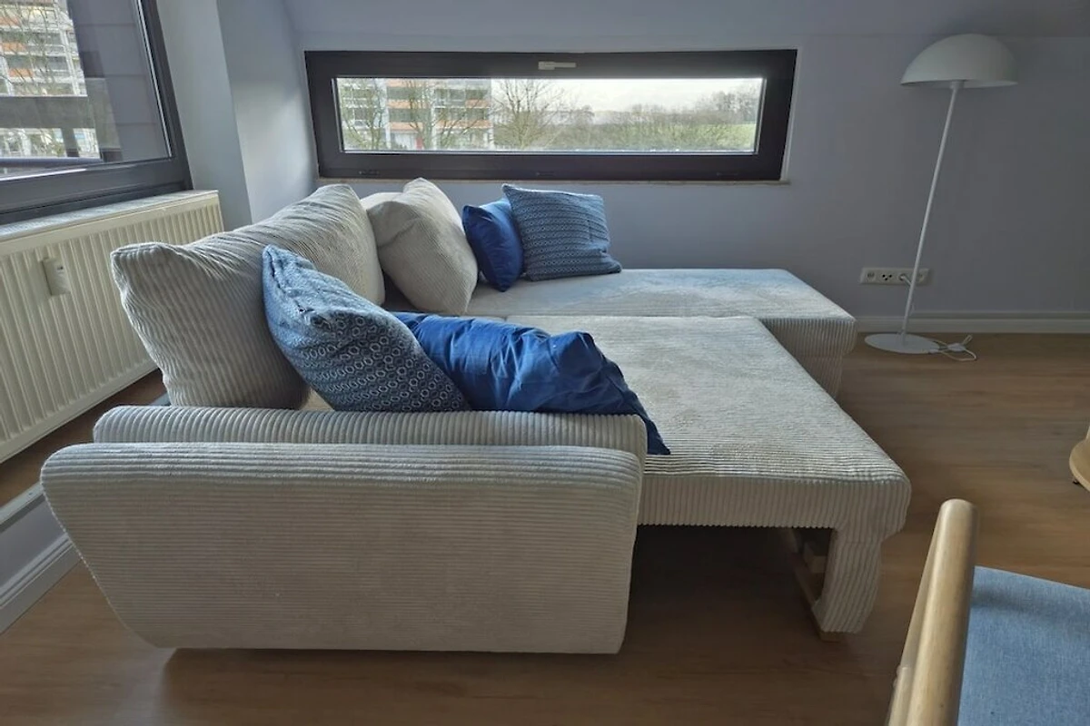 In den Hügelbauten von Bad Zwischenahn befindet sich die stilvolle Ferienwohnung Stella mit maritimen Flair. Die zentrale Lage ermöglicht es Ihnen, die Innenstadt oder die grüne Umgebung über einen idyllischen Radweg schnell zu erreichen. Die Wohnung im ersten Obergeschoss ist über Treppenhaus oder Fahrstuhl erreichbar und wurde 2025 eingerichtet. Vom Wohn- und Schlafzimmer aus haben Sie einen tollen Blick auf das Bad Zwischenahner Meer. Die Küche ist mit hochwertigen Kochutensilien und Elektrogeräten ausgestattet. Der Esstisch kann erweitert werden und bietet so ausreichend Platz für einen Laptop, falls Sie Urlaub und Arbeit verbinden möchten. Im Wohnzimmer gibt es einen Smart-TV mit kostenlosem Netflix-Account, eine kleine Soundbar und ein Schlafsofa. Somit können problemlos zwei Erwachsene und ein Kleinkind Urlaub machen. Das Schlafzimmer ist mit einem großen 1,8x2m Bett und einem schönen Garderobenspiegel ausgestattet. Die kostenlose Nutzung von Waschmaschine und Trockner ist selbstverständlich. Für Kaffeeliebhaber stehen ein Kaffeevollautomat, eine Mokka-Kanne oder eine klassische Kaffeemaschine zur Verfügung.