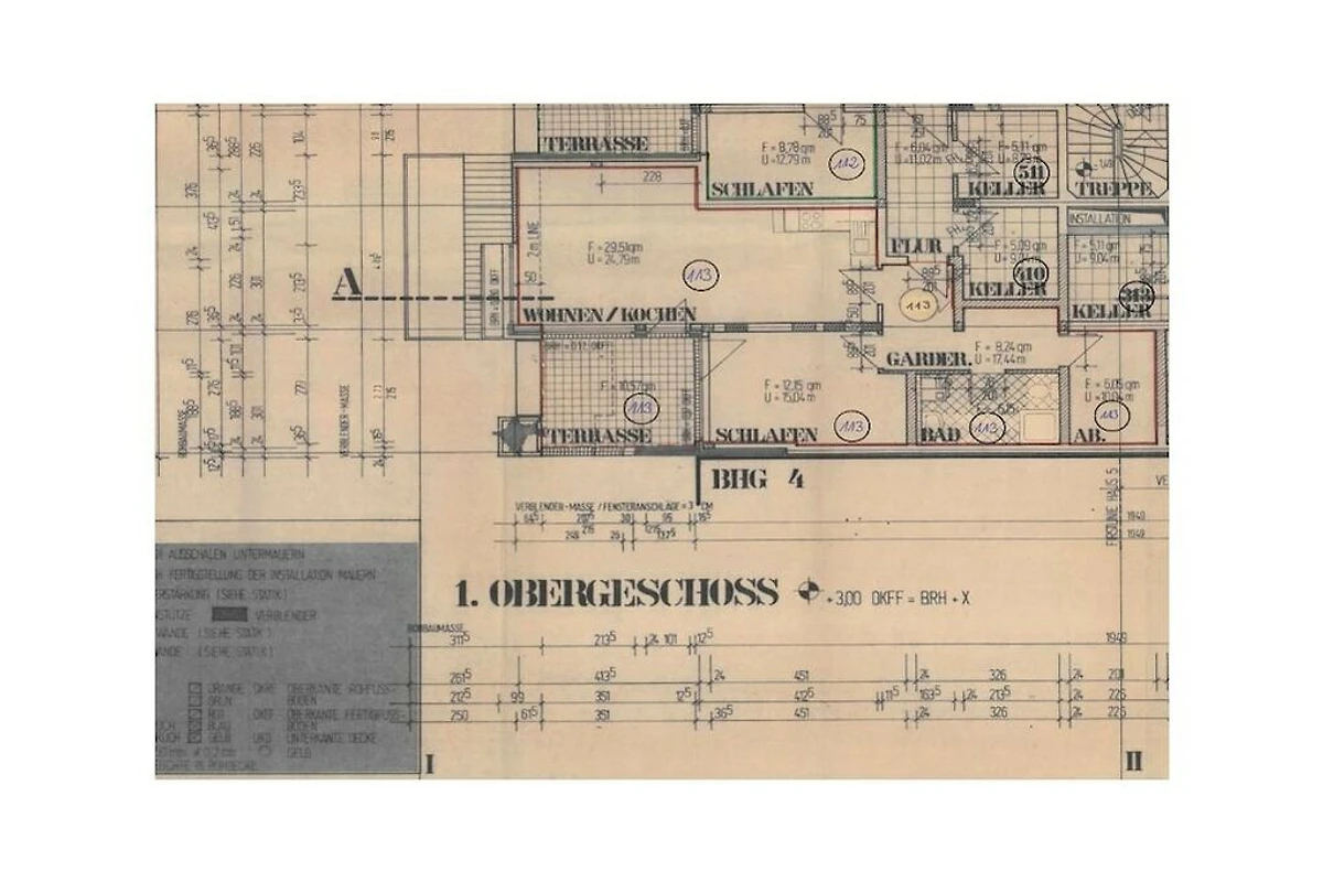 In der 1. Etage: (Wohnzimmer(, Schlafcouch 1 Pers., TV), Schlafzimmer(, , Schlafcouch 1 Pers., Doppelbett), Badezimmer(, Toilette, Dusche, Waschbecken))