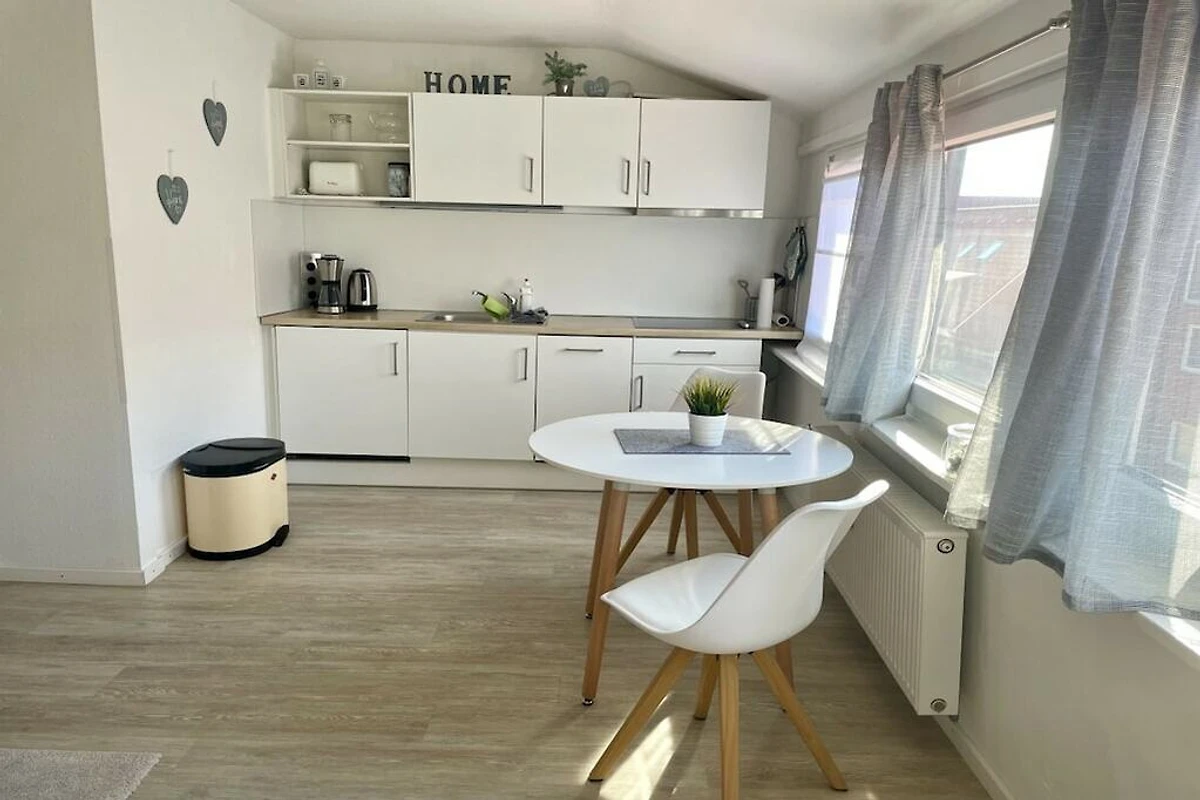 Die helle, modern eingerichtete Dachgeschosswohnung liegt zentral im Ostdorf der Insel. Sie wurde im Jahr 2016 komplett renoviert und neu eingerichtet. Hier finden 2 Personen allen Komfort für einen erholsamen Urlaub auf Juist. Neben einem Wohnzimmer mit Küchenzeile (inklusive Ceranfeld und Geschirrspüler), Essplatz und gemütlicher Couch verfügt sie über ein Schlafzimmer mit großem Doppelbett und ein modernes Duschbad mit Fenster.