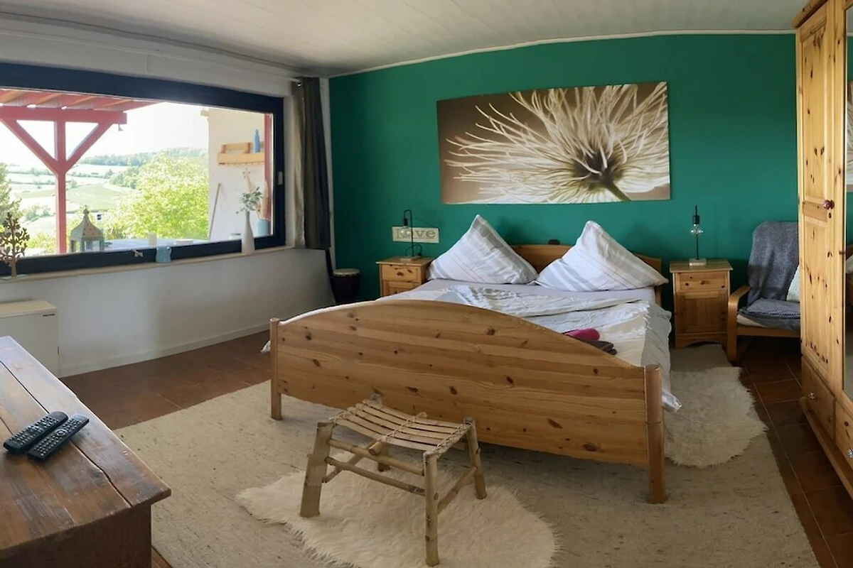 Die Wohnung im Souterrain umfasst 60 qm Wohnfläche und verfügt über ein geräumiges Wohn-Esszimmer, eine offene Küche, ein Bad mit Dusche und ein geräumiges Schlafzimmer. Sie haben eine überdachte Terrasse zur Verfügung, die mit Gartenmöbeln ausgestattet ist. Von dort aus haben Sie einen wunderbaren Blick in die Natur und das Tal. Die Terrasse und der dazugehörige Garten liegen geschützt. Ein eigener Eingang zur Wohnung ist vorhanden. In der oberen Wohnung lebe ich. Der Garten ist nicht komplett eingezäunt. Sie haben einen Grill zur Verfügung. WLAN ist vorhanden. Sollten Sie den Kamin befeuern wollen, so steht Ihnen Feuerholz für 5,-€ pro Korb zur Verfügung.