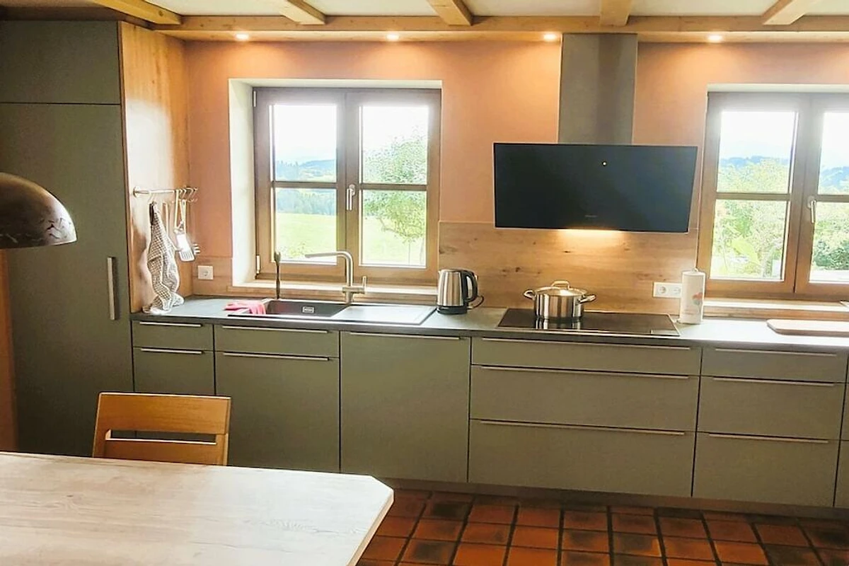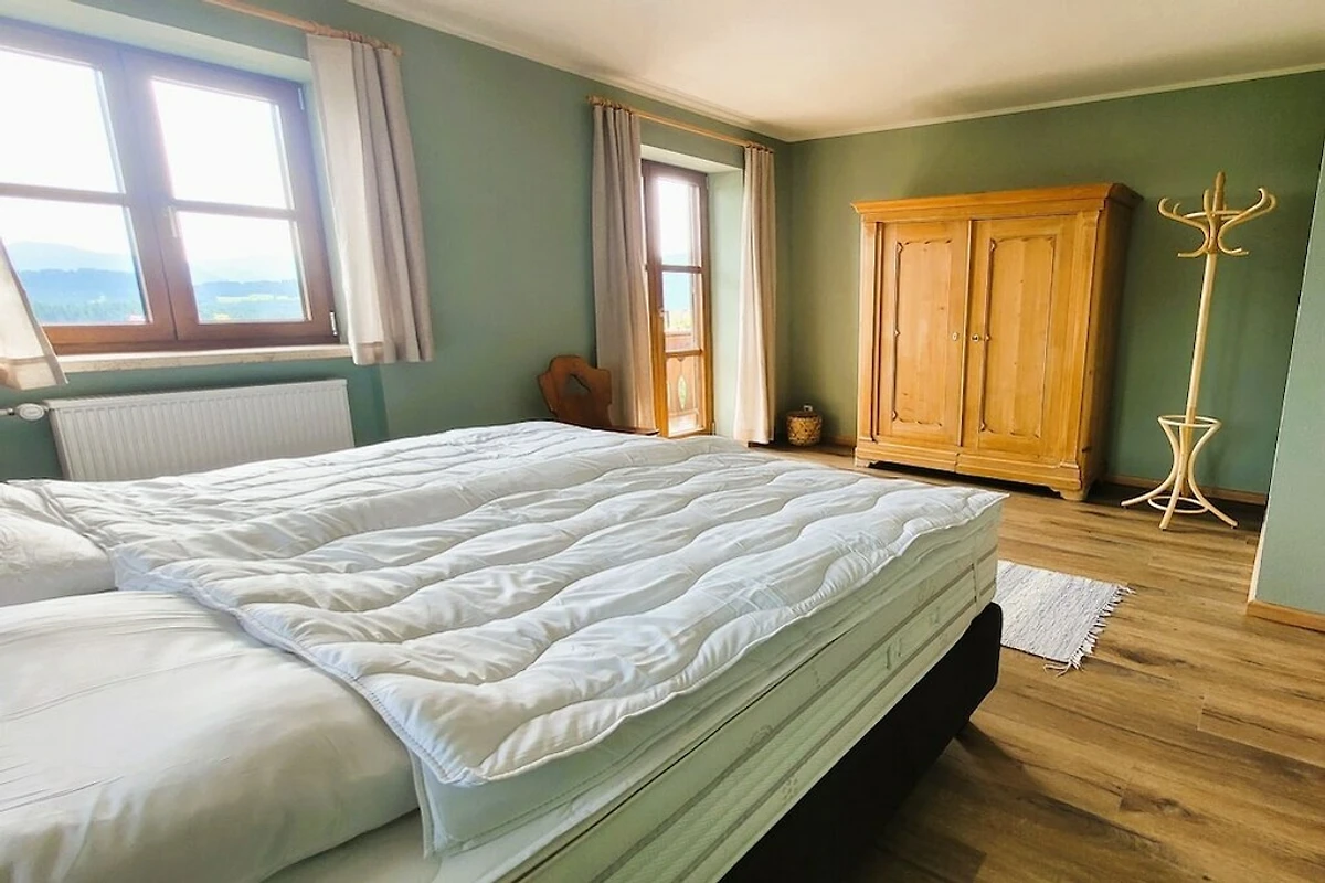 Der auf 1.000 m Höhe gelegene Henninghof ist ein ehem. Mitarbeiter-Wohnhaus eines landwirtschaftlichen Betriebs. Es wurde 2025 komplett renoviert und mit einer modernen Küche, neuen Bädern und Betten sowie mit einer schönen Sauna ausgestattet. Die 5 großzügigen Schlafzimmer mit Doppelbetten sowie 2 Kinderbetten bieten Platz für 10 Erwachsene und 2 Kinder. Drei Schlafzimmer haben direkten Zugang zu Balkonen. Von allen Zimmern hat man einen phantastischen Blick in die Allgäuer Alpen.