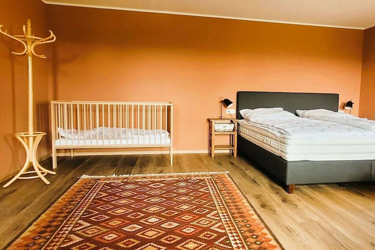 In der 1. Etage: (Diele(, Toilette, Dusche, Waschbecken), Diele(, , Toilette, Badewanne, Dusche, Waschbecken, Heizung), Schlafzimmer(, , Doppelbett, Kinderbett), Schlafzimmer(, , Doppelbett), Schlafzimmer(, Doppelbett), guest toilet(, Toilette, Waschbecken))