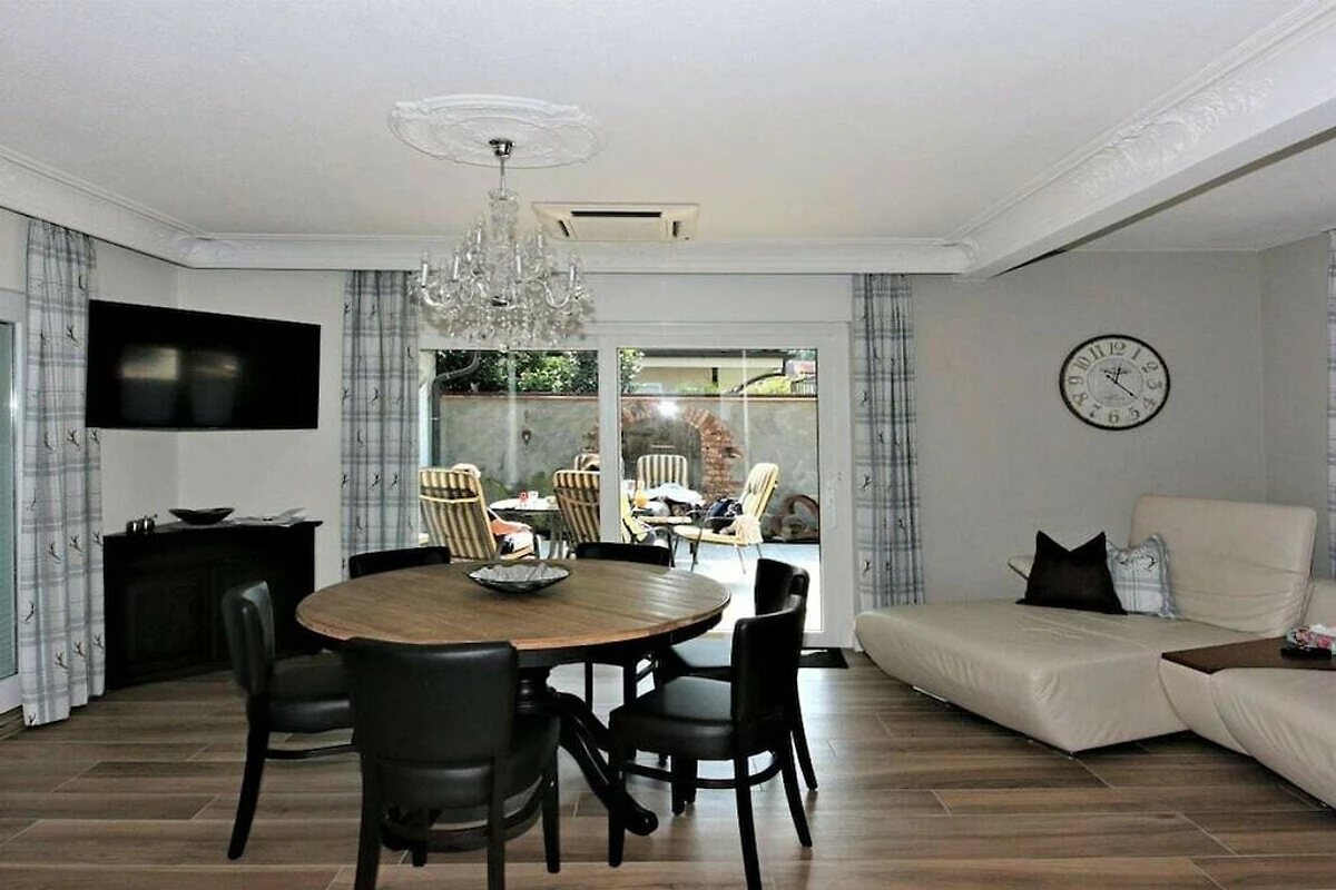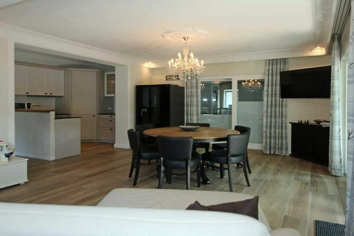 Hochwertig eingerichtete Ferienwohnung mit 2 getrennten Schlafzimmern, 1 Bad mit WC , zusätzlich ein Gäste-WC , eine Wohnküche zum gemütlichen Beisammensein , Fernseher im Wohnzimmer und in einem der 2 Schlafzimmer, beheizter Pool mit Gegenstrom Anlage, der direkt ans Ess-Wohnzimmer und die Terrasse angrenzt.