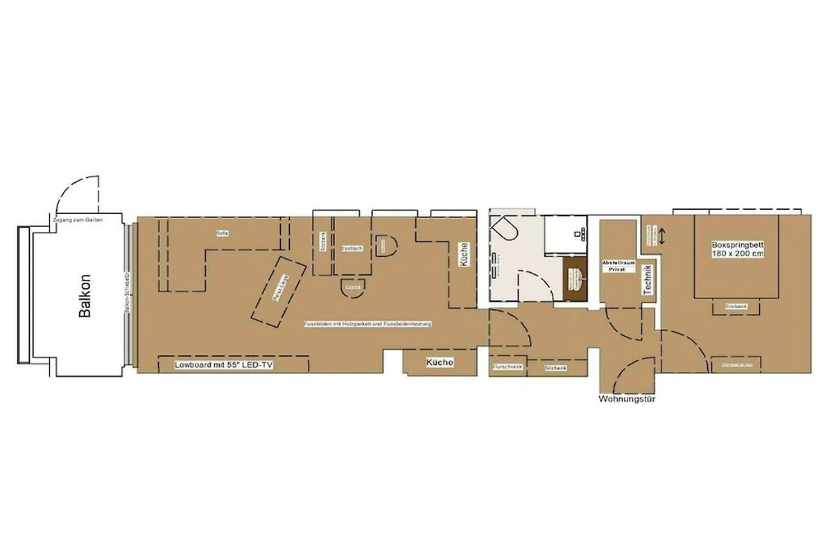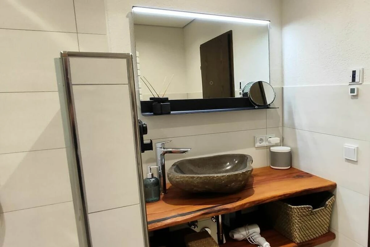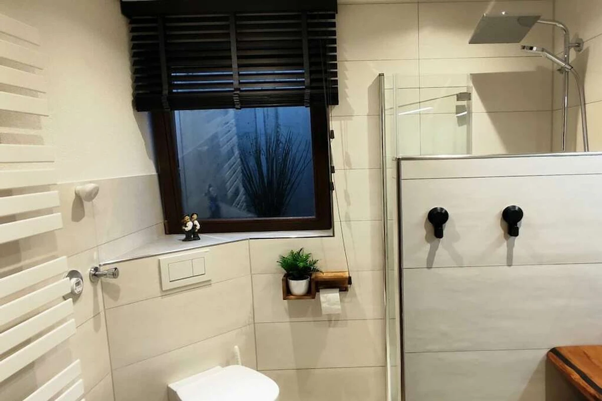 Unsere moderne 2-Zimmer-Ferienwohnung befindet sich im Gartengeschoß des Hauses, ist mit Balkon und direkten Zugang zum Garten.