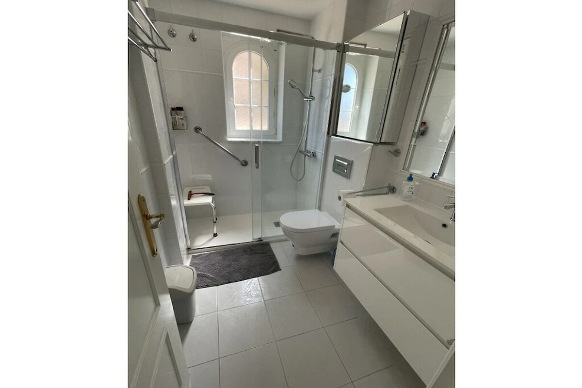 Parterre: (Wohn/Esszimmer(, TV, TV, TV, Esstisch, Klimaanlage), Schlafzimmer(, , Einzelbett, Einzelbett, Doppelbett, Babybett), Schlafzimmer(, , Einzelbett, Einzelbett, Doppelbett, Babybett), Badezimmer(, Toilette, Dusche, Waschbecken))