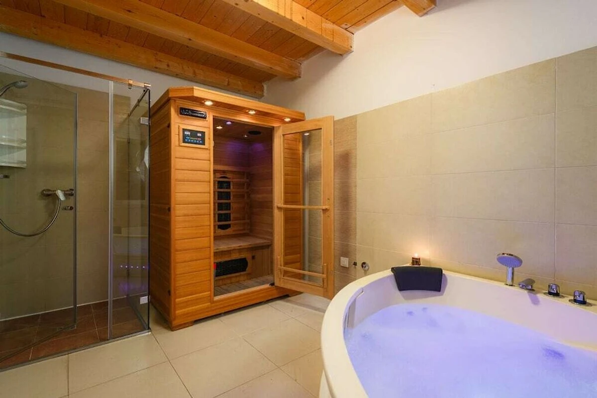 Das schöne Poolhaus befindet sich im Ort Rakalj in Meernähe. Es wurden traditionelle, istrische und moderne Elementen kombiniert. Im Erdgeschoss befindet sich ein großzügiger Wohnbereich, von dem aus Sie auf die Terrasse gelangen. Im 1.Stock sind die Schlafzimmer mit eigenen Bädern und Terrassen mit Blick auf die Kvarner Bucht. Das Haus ist mit einer Sauna, einem Whirlpool Spielmöglichkeiten ausgestattet.
