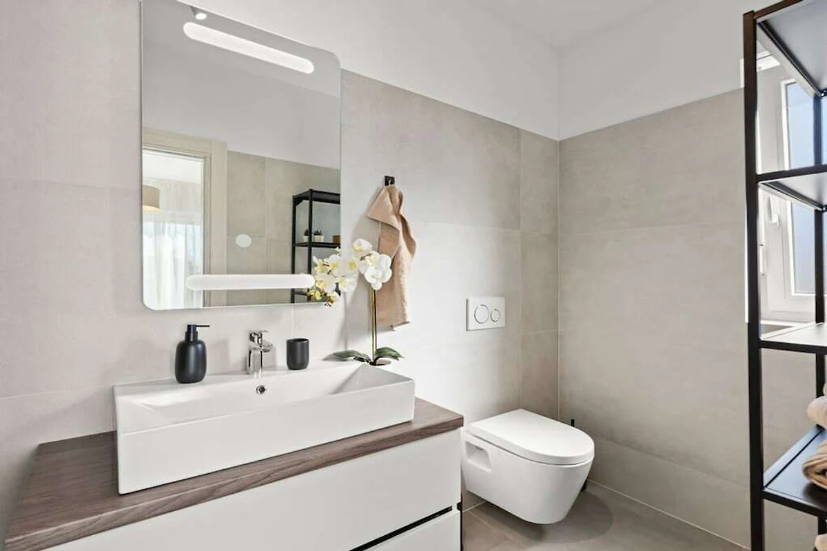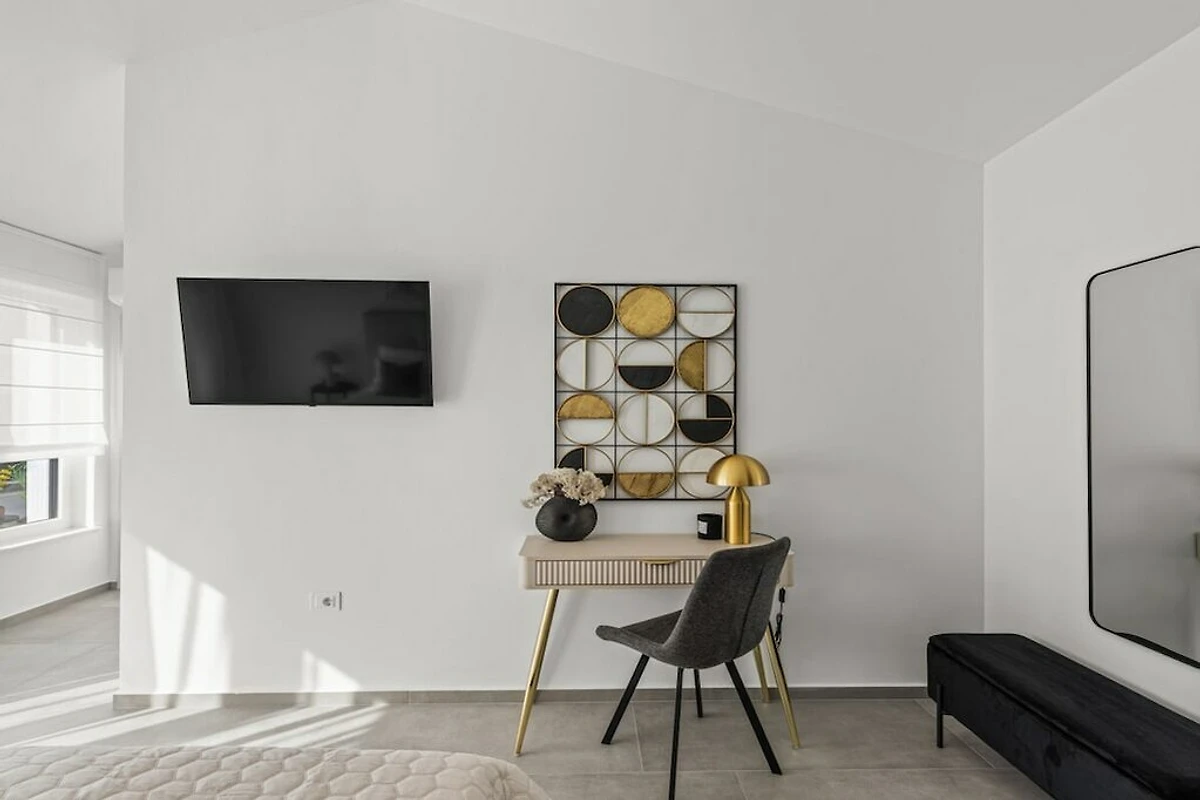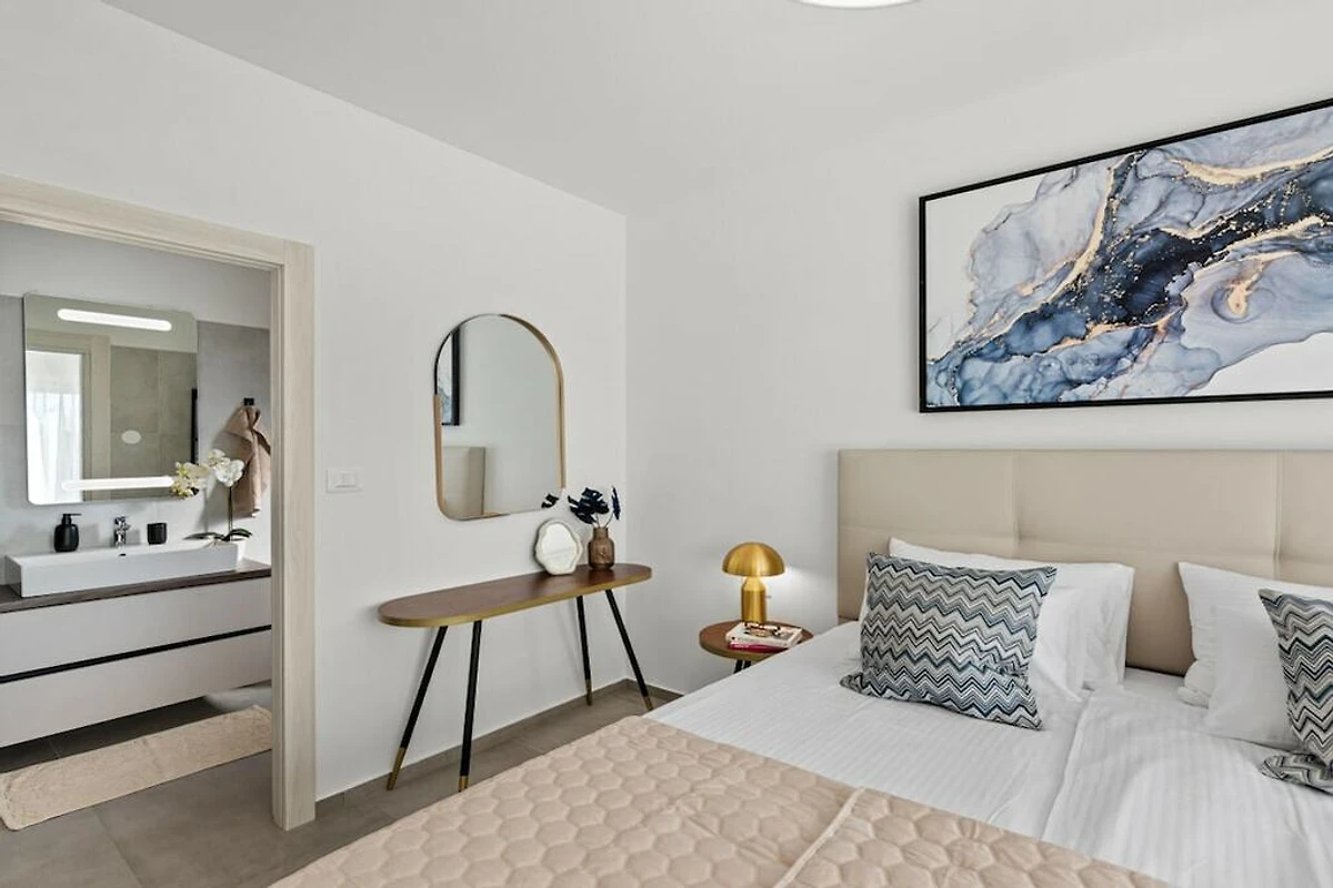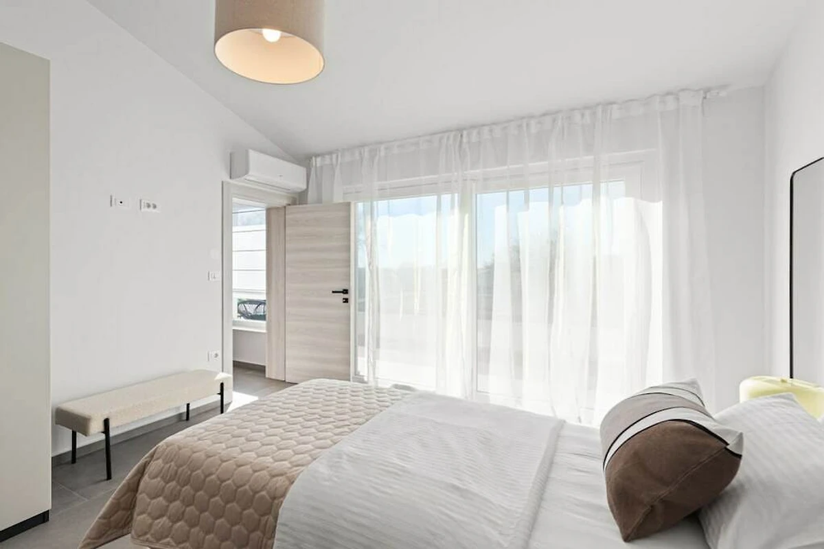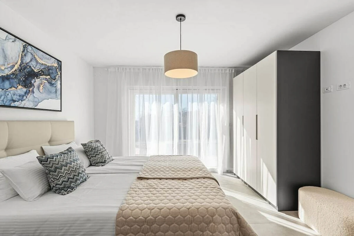 The villa is equipped with modern appliances and decorated in relaxing tones. It has 3 bedrooms with private bathrooms, a modern and fully equipped kitchen (toaster, microwave, cafeteria) with a dining table, a living room and toilet, and a laundry room. In the outdoor area there is a swimming pool, a covered terrace with a dining table and a barbecue for pleasant gatherings with family and friends. And another additional terrace perfect for enjoying the morning sun.