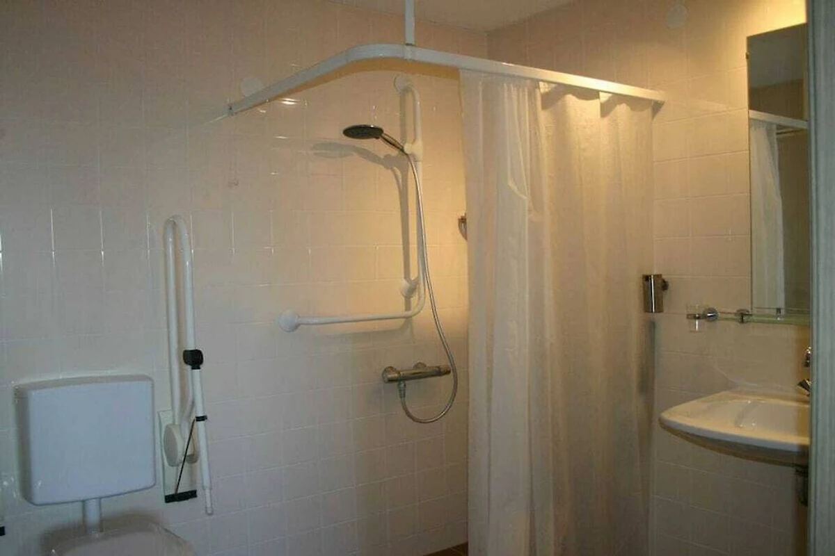 Das Badezimmer bietet eine geräumige Dusche, aber keine Badewanne. Es hat eine Toilette, und eine zweite Toilette befindet sich im Flur.