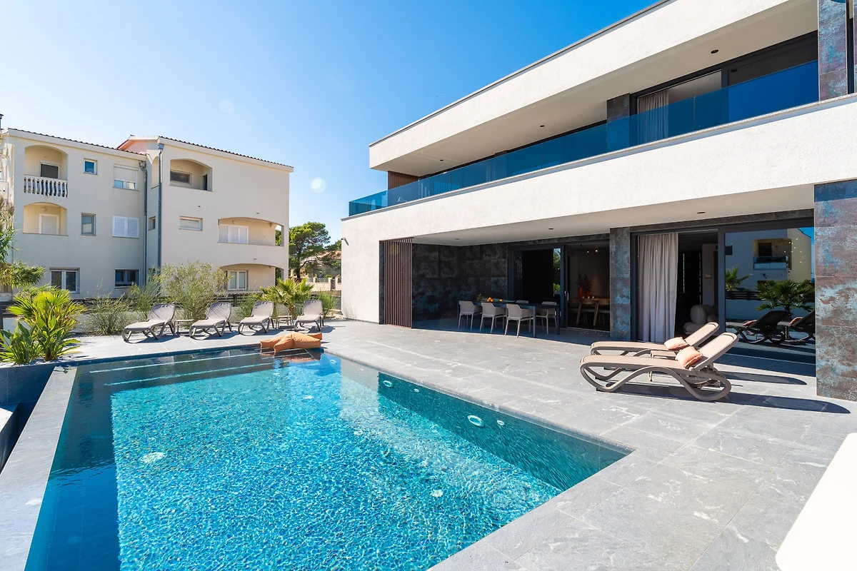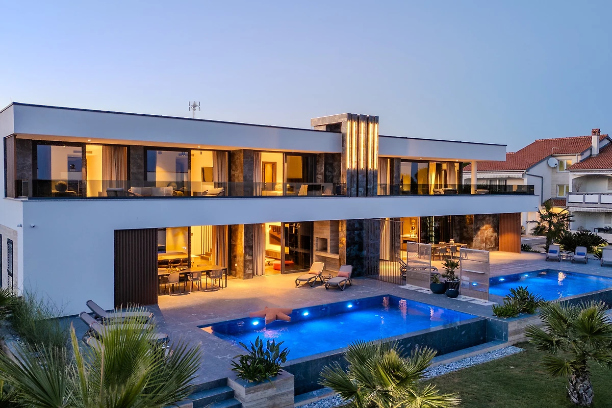 Entdecken Sie eine moderne und wunderschöne Küstenunterkunft in Suva Punta Elite, einer atemberaubenden Villa in der ruhigen Küstenstadt Vir. Diese geräumige Immobilie bietet einen idealen Rückzugsort für Familien und Paare, die ein luxuriöses und komfortables Urlaubserlebnis suchen.