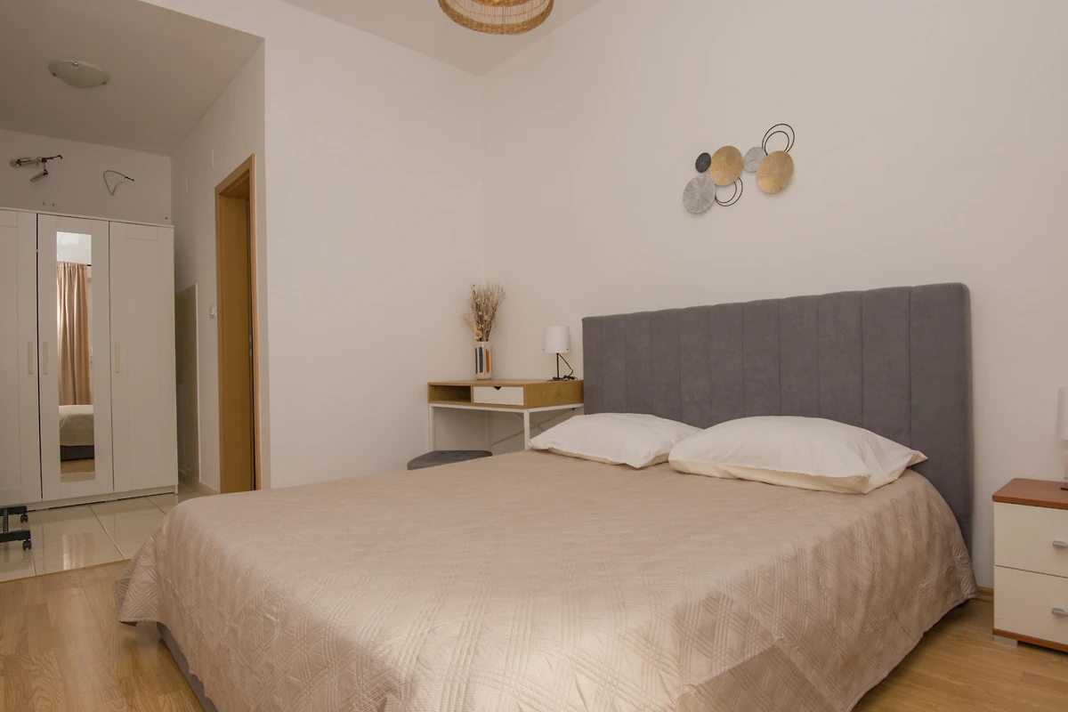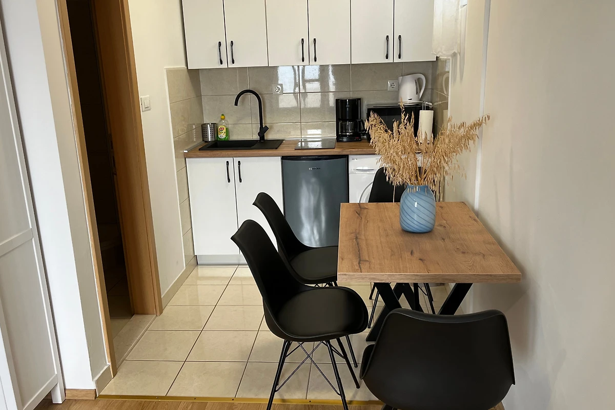 Entdecken Sie eine charmante 45 m² Wohnung, die im malerischen Dorf Podaca liegt und einen perfekten Rückzugsort für Paare und kleine Familien bietet, die ein ruhiges kroatisches Küstenerlebnis suchen. Diese helle und gemütliche Unterkunft bietet komfortables Wohnen für bis zu 4 Gäste und verfügt über ein gut gestaltetes Einzelschlafzimmer mit einem luxuriösen Doppelbett.