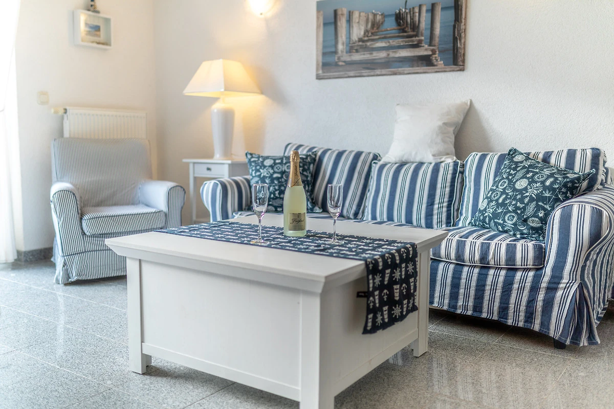 Im Wohnbereich sorgen ein TV und gemütliche Sitzmöglichkeiten für entspannte Stunden nach einem Tag am nahen Sandstrand oder bei Ausflügen entlang der malerischen Küste. Die Einrichtung ist durchdacht und bietet alles, was Sie für einen angenehmen Aufenthalt benötigen. Eine Waschmaschine steht Ihnen ebenso zur Verfügung, sodass auch längere Aufenthalte problemlos möglich sind. Für Ihr Wohlbefinden liegen ein Haartrockner und weitere Annehmlichkeiten bereit.