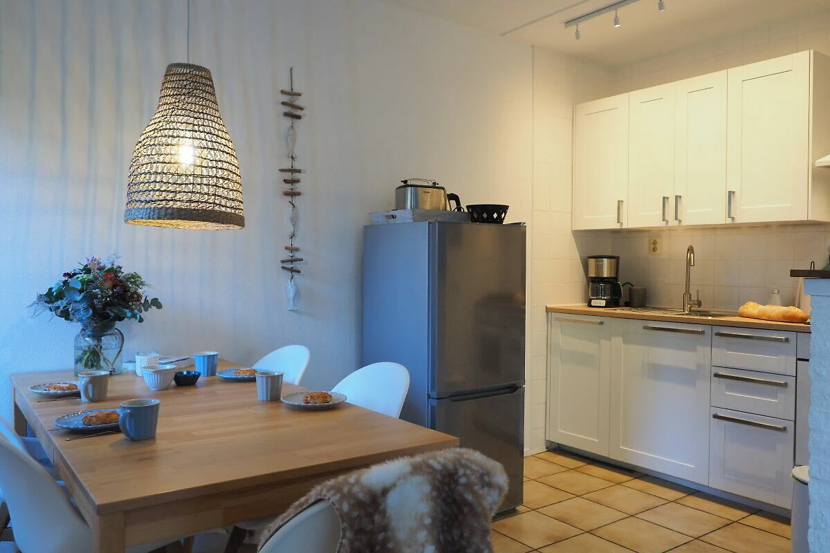 Zwei Fahrzeug parken Sie bequem direkt vor dem Ferienhaus. Die voll ausgestattete Küche mit Geschirrspüler, Kaffeemaschine, Backofen, großer Kühl-Gefrierkombination und allen wichtigen Geräten lädt zum gemeinsamen Kochen ein. Für Familien stehen ein Babybett und ein Hochstuhl bereit. Die Unterkunft ist ausschließlich für Nichtraucher und bietet eine allergenarme Umgebung.