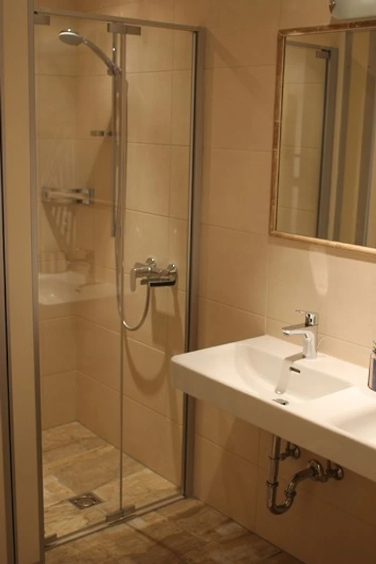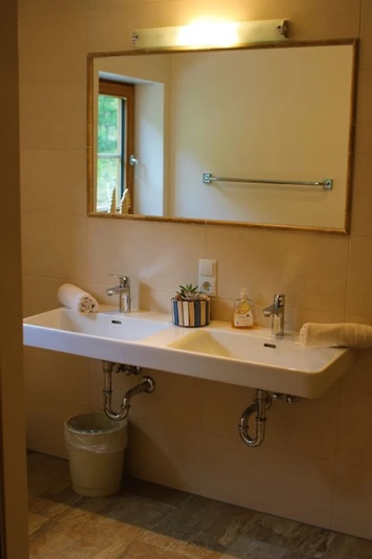Für komfortable Aufenthalte stehen zwei Badezimmer zur Verfügung – jeweils mit Dusche und Doppelwaschbecken, dazu mehrere WCs.
