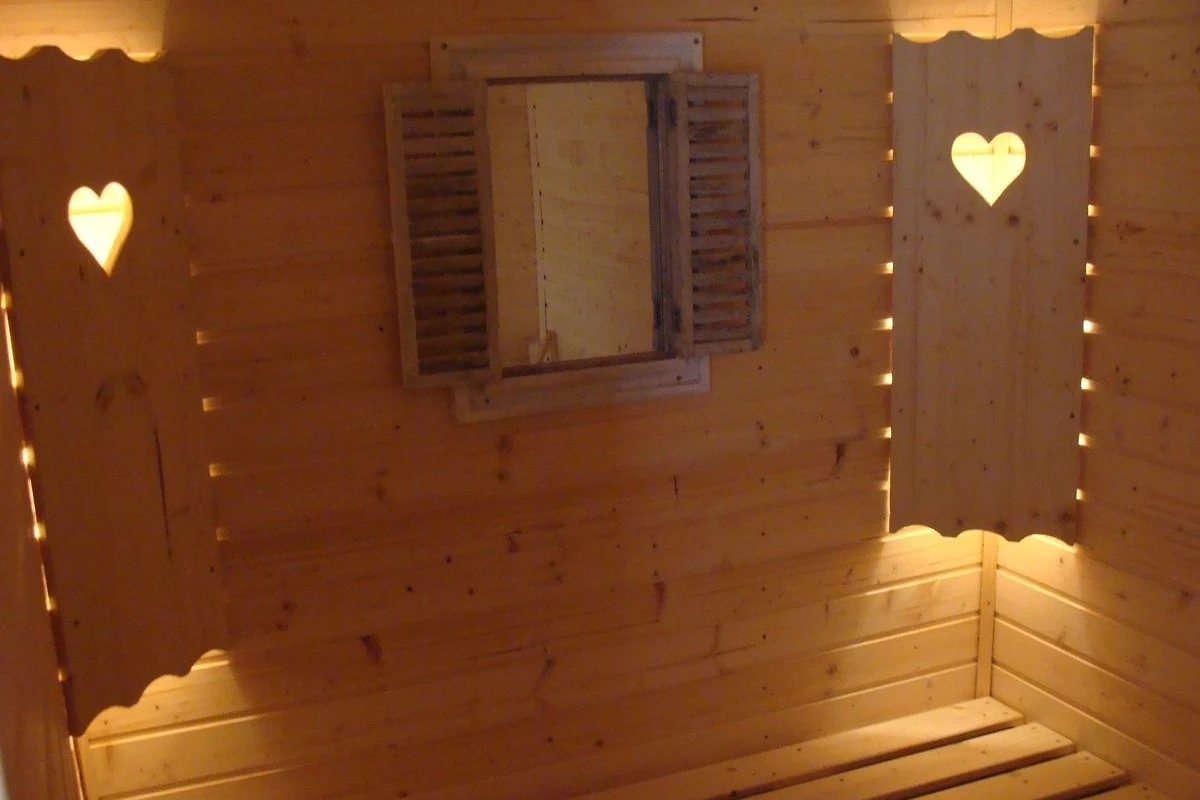 Im Anbau der Hütte befindet sich eine eigene Sauna, die perfekt zum Abschalten und Entspannen einlädt.