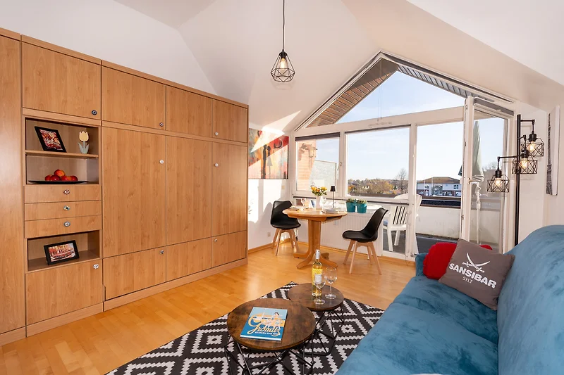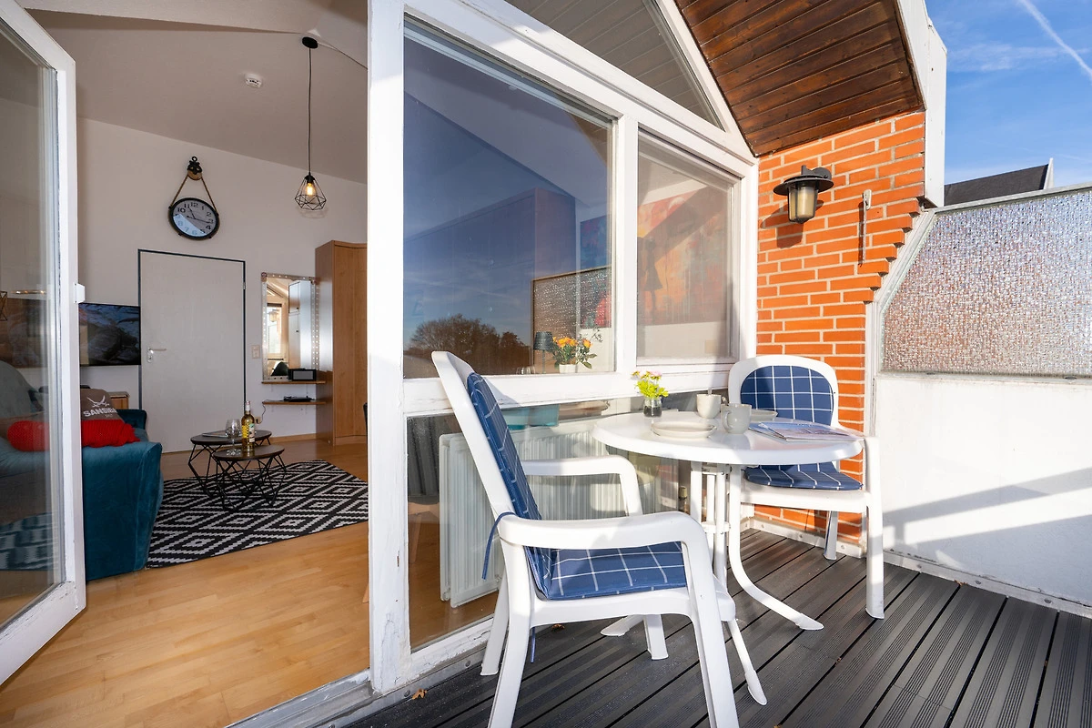 Der geräumige Balkon lädt zum Frühstück im Freien oder zur abendlichen Entspannung mit Blick über Grömitz ein. Ihren Pkw lassen Sie bequem auf der zugeordneten Parkfläche stehen.