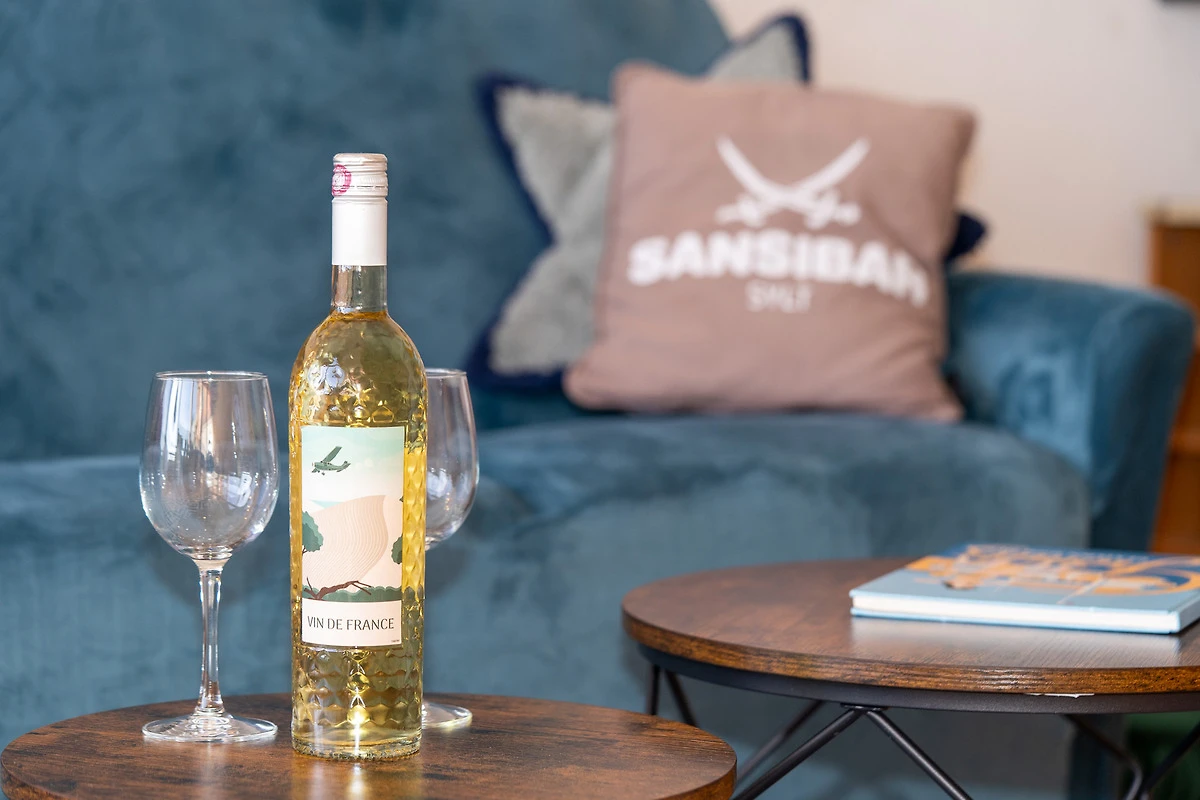 Der kombinierte Wohn-, Ess- und Schlafbereich ist gemütlich gestaltet und bietet Ihnen nicht nur ein Schrankbett (2x80x190), sondern auch ein zusätzliches Sofa, einen Esstisch mit zwei Stühlen sowie eine Kommode mit Flat-TV. Die grossen Fenster sorgen für Helligkeit; lassen sich aber auch abdunkeln. Kostenloses W-LAN steht Ihnen während des Aufenthaltes zur Verfügung.