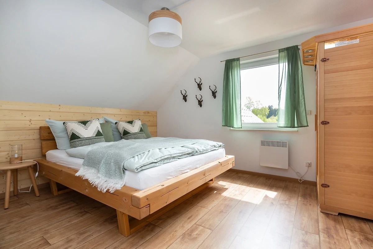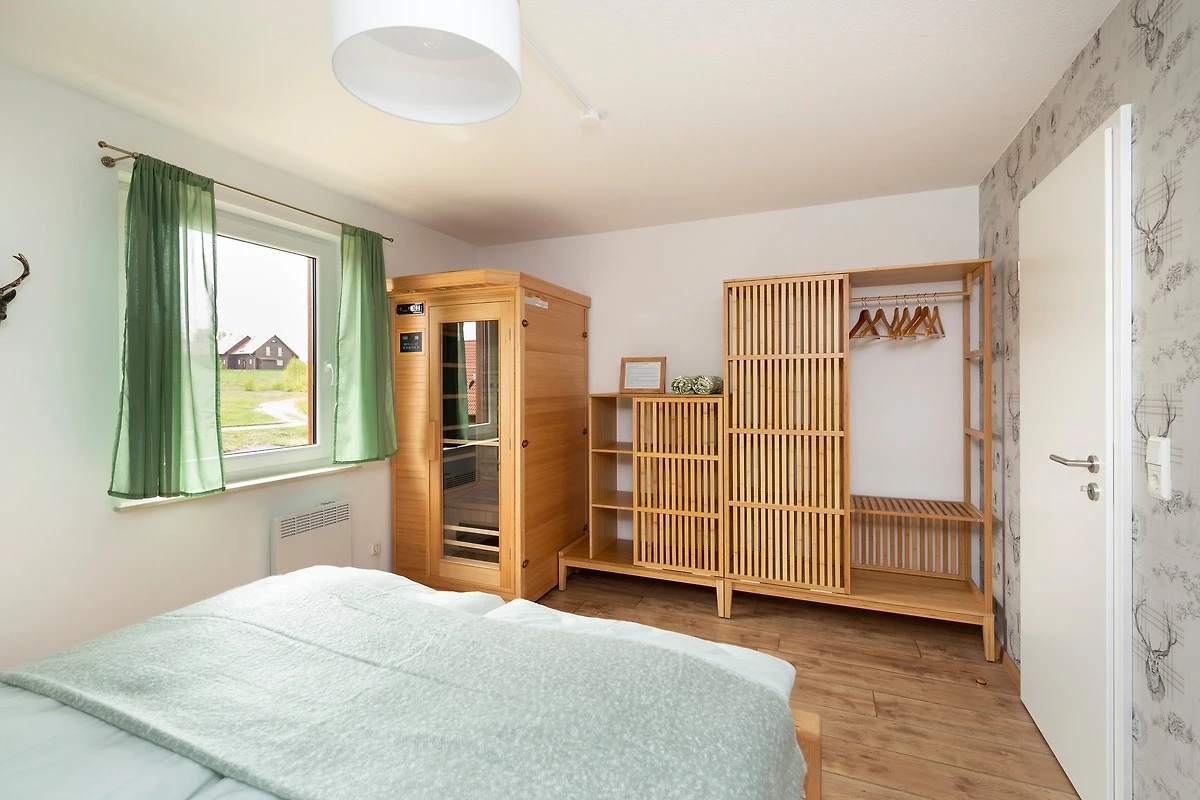 Auf 85 qm finden Sie einen grosszügigen Wohn-/Essbereich sowie eine voll ausgestattete Küche. Ausserdem gehören 2 Schlafzimmer mit Doppelbetten, 2 Bäder, eine Waschmaschine, ein Kamin im Wohnbereich sowie eine Infrarotsauna zum Ferienhaus. Zur überdachten Terrasse und dem eigenen kleinen Garten stehen eine gemütliche Sitzecke sowie ein Gasgrill zur Verfügung.
