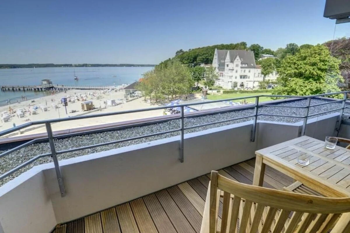Geniessen Sie einen aussergewöhnlich guten Meerblick vom überdachten Balkon, eine offene Wohnküche, kostenfreies WLAN und einen Privatparkplatz direkt am Sandstrand von Glücksburg.