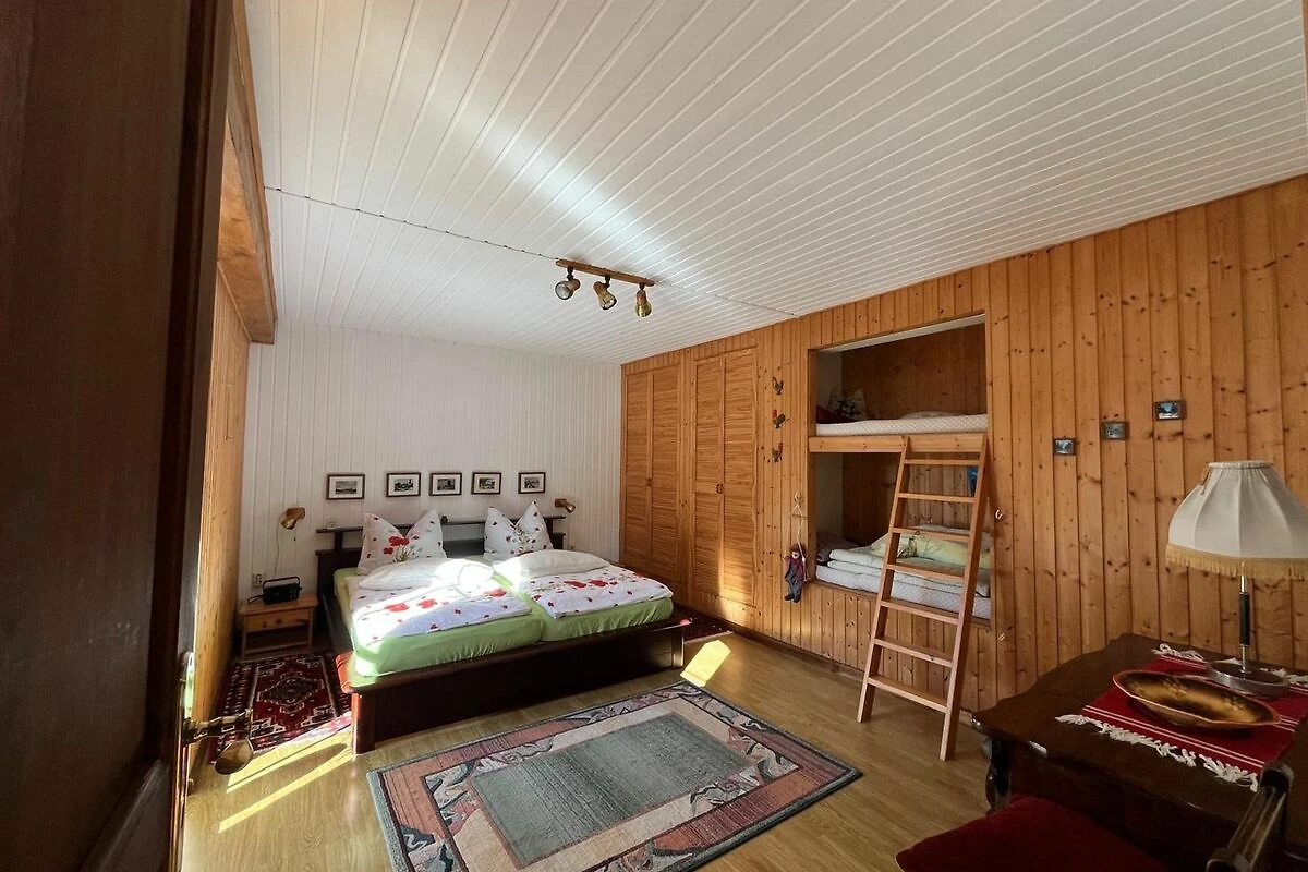 Das kombinierte Wohn-/Schlafzimmer ist eingerichtet mit Polstermöbeln, einem Essplatz, einem Doppelbett (180 × 200 cm), Flachbild-TV und Radio. Im separaten Schlafzimmer stehen Ihnen ein weiteres Doppelbett sowie ein Kleiderschrank zur Verfügung. Alternativ gibt es für die Kinder zum Schlafen zwei Kojen (Etagenbett).