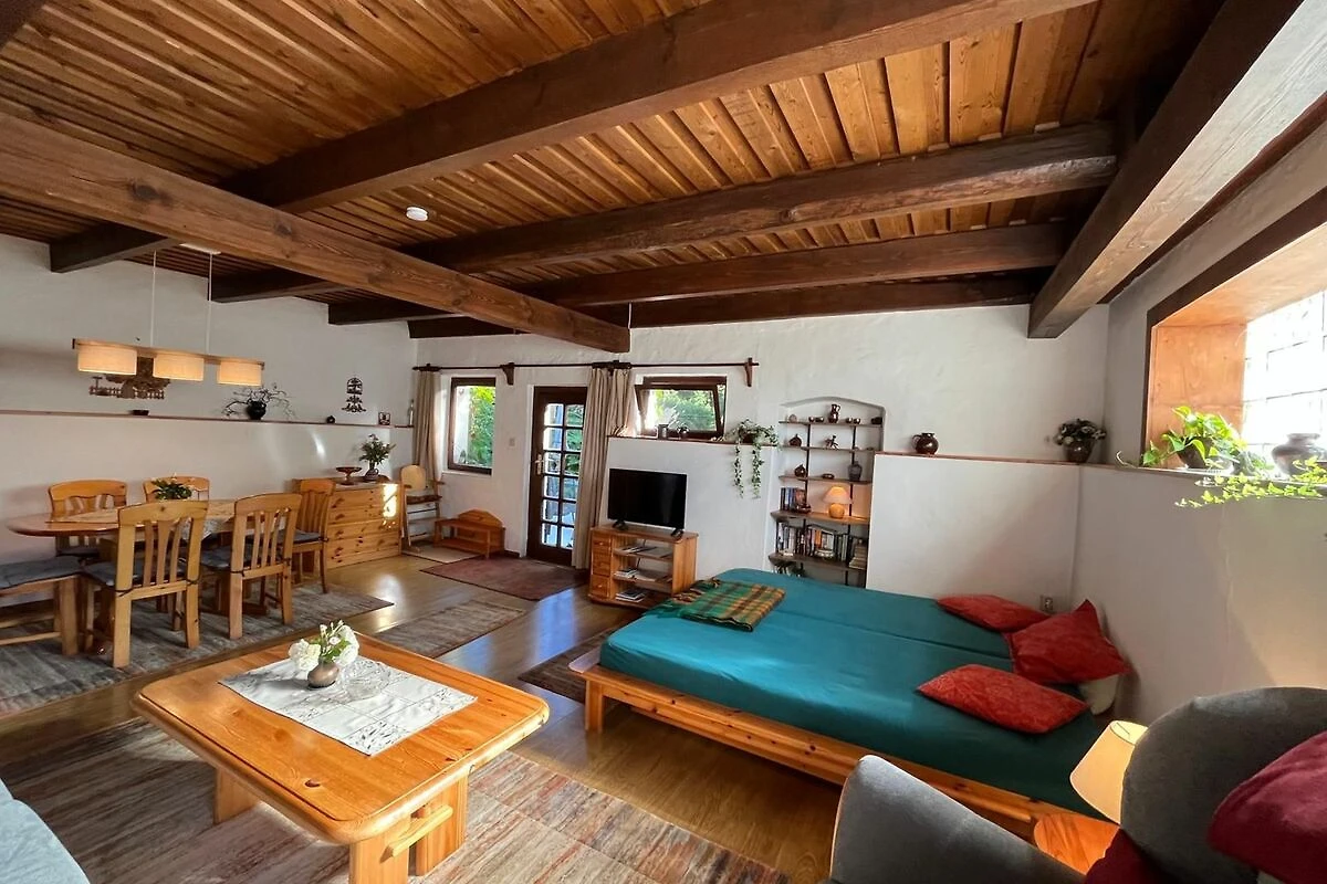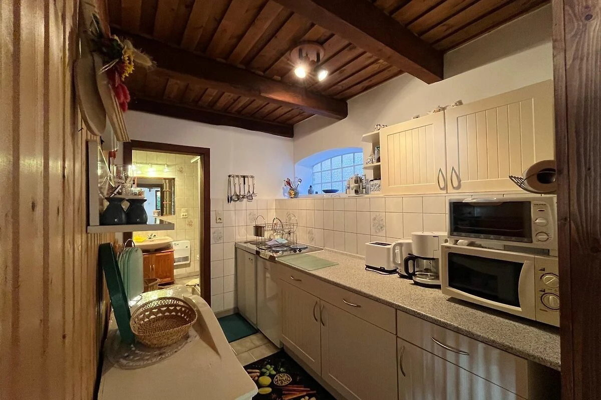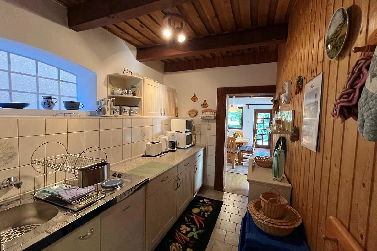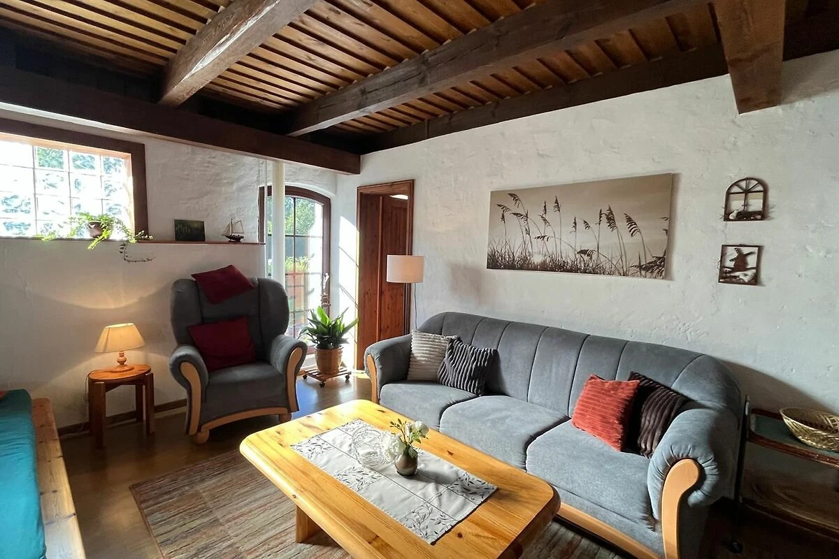 Die rustikal eingerichtete Ferienwohnung überzeugt durch ihren gemütlichen Landhausstil mit sichtbarer Holzbalkendecke. Es handelt sich um eine ebenerdige Nichtraucherwohnung (nicht rollstuhlgerecht), in der ein Laminatboden verlegt ist; Teppiche sorgen zusätzlich für eine warme und behagliche Atmosphäre.
