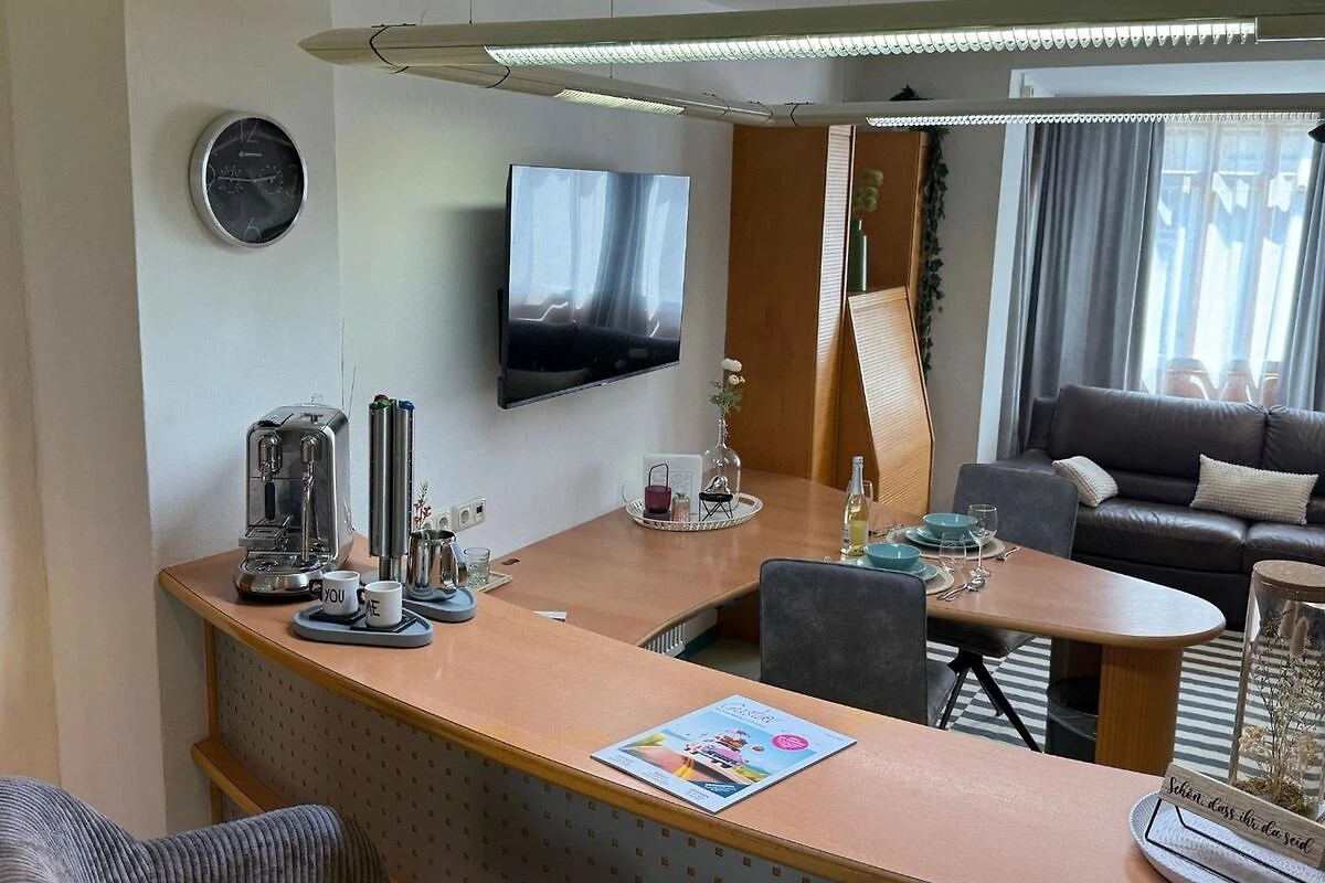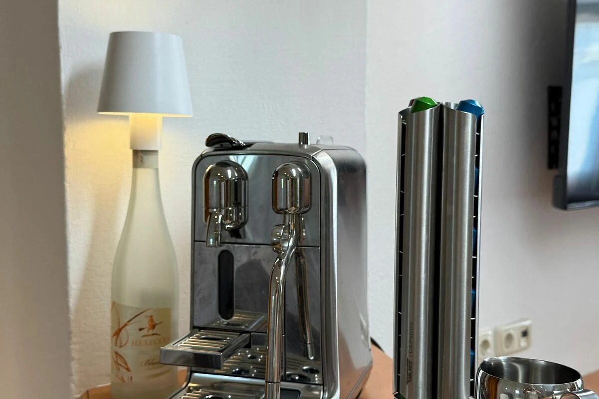 • Barbereich: Hier erwarten Sie zwei stylische Hocker und eine Sage Nespresso Kaffeemaschine. Kaffeekapseln sind vor Ort gegen Gebühr erhältlich, damit Sie Ihren Morgenkaffee in vollen Zügen geniessen können.