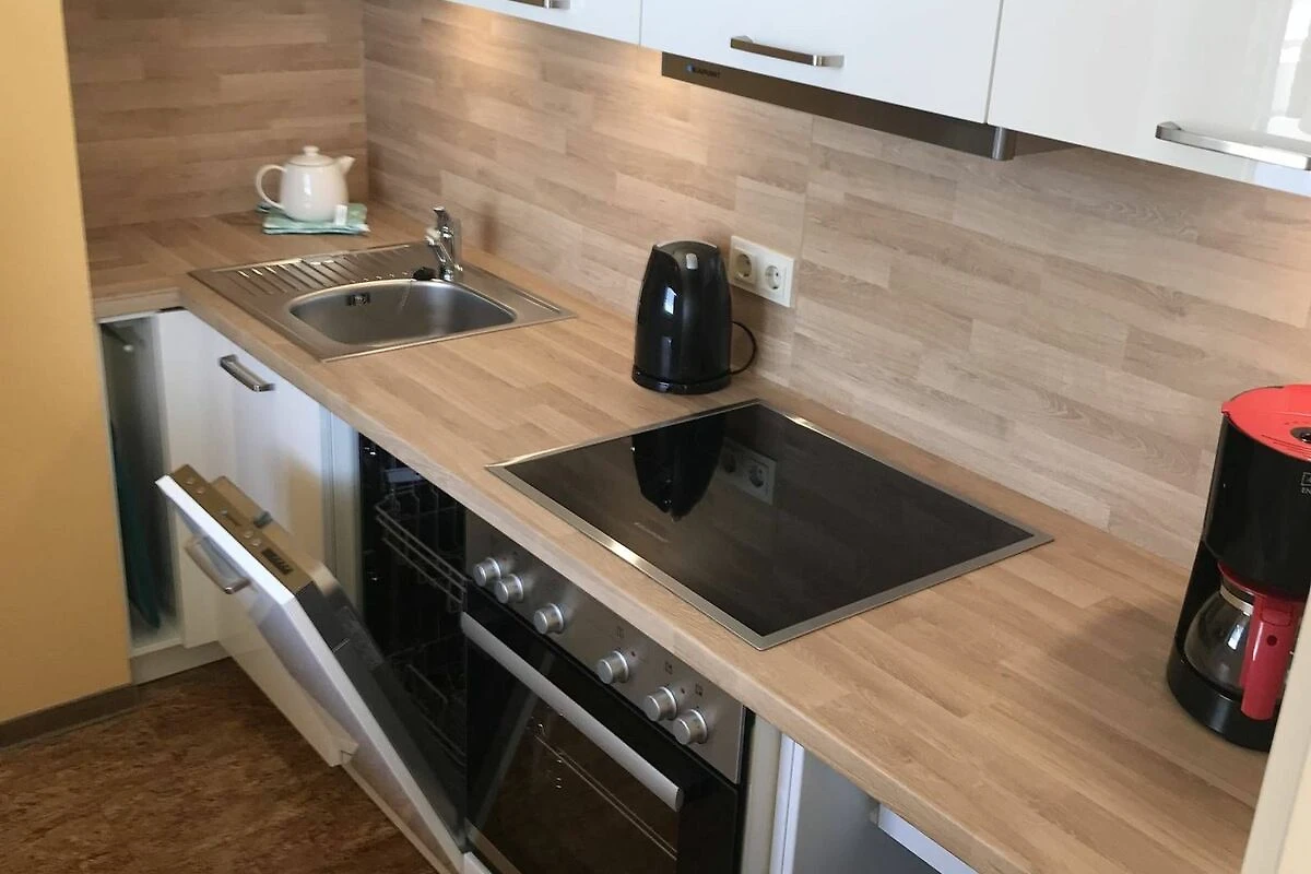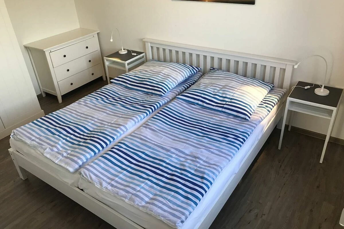 Mit einer Grösse von ca. 66 m² Wohnfläche ist die Wohnung komplett bis zu 4 Personen ausgestattet, Wohnzimmer mit kompletter neuer Einbauküche (Backofen, Cerankochfeld, Geschirrspüler, Toaster, Wasserkocher, Kühlschrank), Essplatz für 2 Personen, Sofa-Ecke und direktem Zugang zur grossen Dachterrasse, 1 Schlafzimmer mit Doppelbett (Kleiderschrank, 1 Flatscreen TV), Bad mit Dusche und WC, 1 Flatscreen TV im Wohnzimmer, Nichtraucherwohnung, keine Haustiere, PKW-Stellplatz direkt am Haus. Die kompletten Aussen-Türen und die Fenster sind mit Insektenschutz versehen.