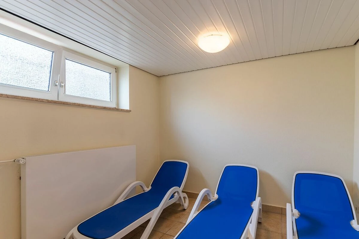 Die Ferienanlage verfügt im Nachbarhaus (Haus Rotesand) über ein Schwimmbad (kostenlos nutzbar) mit Tischtennisraum, eine Finnische Sauna (gegen Gebühr) befindet sich im Haus und eine Dampfsauna (gegen Gebühr) befindet sich im Nachbarhaus Haus Knechtsand. Im Haus stehen Ihnen Waschmaschine und Trockner (jeweils gegen Gebühr) zur Verfügung.