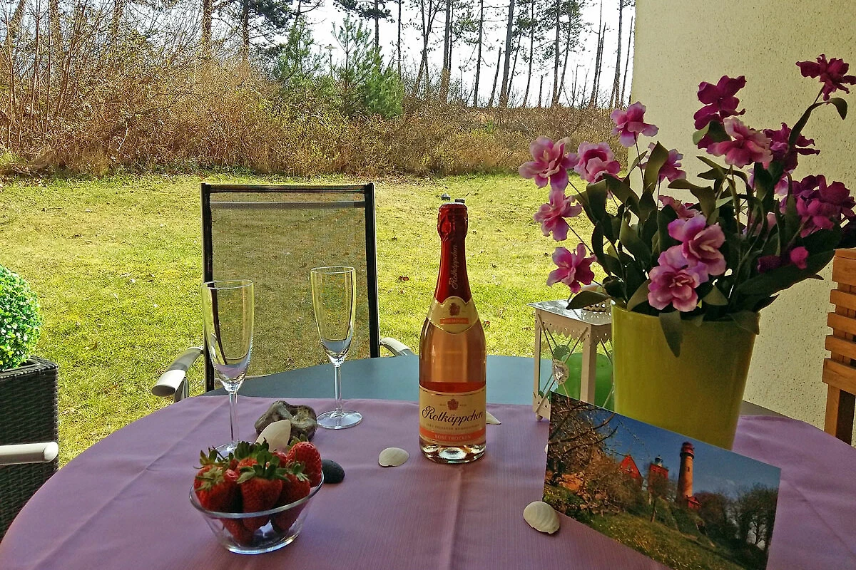 komplett Fußbodenheizung, Internet (WLAN) vorhanden, direkter Zugang zum Sandstrand, Blick vom Strand bis nach Kap Arkona, Nichtraucherwohnung, Spielesammlungen, Fahrradkeller vorhanden, Waschmaschine & Trockner im Gemeinschaftsraum gegen Gebühr (2 Euro), Fenster und Terrassentüren mit Insektenschutz.