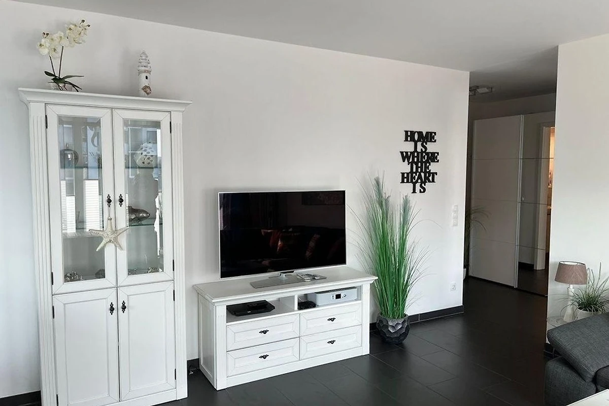 Die Ferienwohnung im Dünenpark Heiligenhafen bietet auf 65 m² grosszügigen Raum für Ruhe und Erholung. Sie befindet sich im Erdgeschoss/Hochparterre und ist stilvoll eingerichtet. Das helle Wohnzimmer verfügt über eine gemütliche Sofaecke, einen Flatscreen-TV und einen DVD-Player. Die voll ausgestattete Küchenzeile lässt keine Wünsche offen und beinhaltet unter anderem einen Backofen, Geschirrspüler, Kaffeemaschine, Wasserkocher, Toaster sowie einen Waschtrockner. Das Schlafzimmer bietet ein bequemen Doppelbett für erholsame Nächte. Ein balkon mit herrlichem Ostseeblick lädt dazu ein, den Tag entspannt ausklingen zu lassen. Ein eigener Aussenstellplatz für Ihr Fahrzeug steht direkt am Haus zur Verfügung. Haustiere sind willkommen, und die Lage ist nur 100 Meter vom feinsandigen Badestrand entfernt. Die Wohnung eignet sich ideal für einen unvergesslichen Urlaub an der Ostsee.
