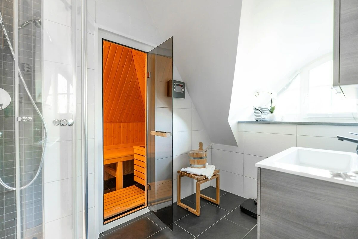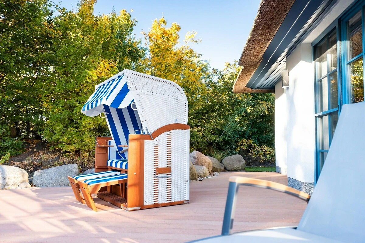 Dieses Ferienhaus wurde im Oktober 2025 neu renoviert und mit neuen Möbeln ausgestattet. Dieses wunderschöne Ferienhaus mit traditionellem Reetdach, ortstypischer Feldsteineinfriedung und eingezäuntem Grundstück liegt in einer neuen Ferienhausanlage. Es bietet großzügig Platz für bis zu 6 Feriengäste (2 Schlafzimmer mit Doppelbett, davon eins im EG, 1 Schlafzimmer mit Kinderetagenbett) und verfügt über 2 hochwertige Bäder und ein Gäste-WC, davon ein Bad mit Badewanne und Dusche, ein Bad mit Dusche und Sauna. Im Erdgeschoss befindet sich ein ca. 30 m² großer Wohn-Essbereich mit gemütlichen Sitzmöglichkeiten, Kaminofen, SAT-TV mit Sky und neben einer komplett ausgestatteten Küche ist ein großer Esstisch für 6 Personen vorhanden. Um Sie und Ihr Fahrzeug mit Strom mobil zu halten, haben wir die Infrastruktur geschaffen und stellen Ihnen einen Ladepunkt (kostenpflichtig) am Haus zur Verfügung. Idyllische Lage am Bodden, nur 100 Meter vom Wasser entfernt. Genießen Sie Ihren Urlaub von Anfang an und entspannen Sie in der Sauna oder vor dem Kamin. Für Abwechslung sorgen WLAN und SAT-TV mit Sky.