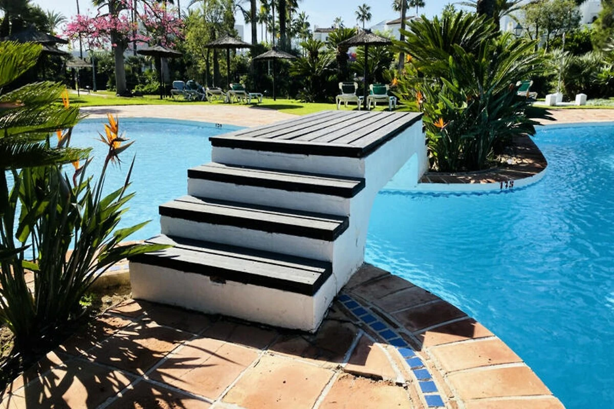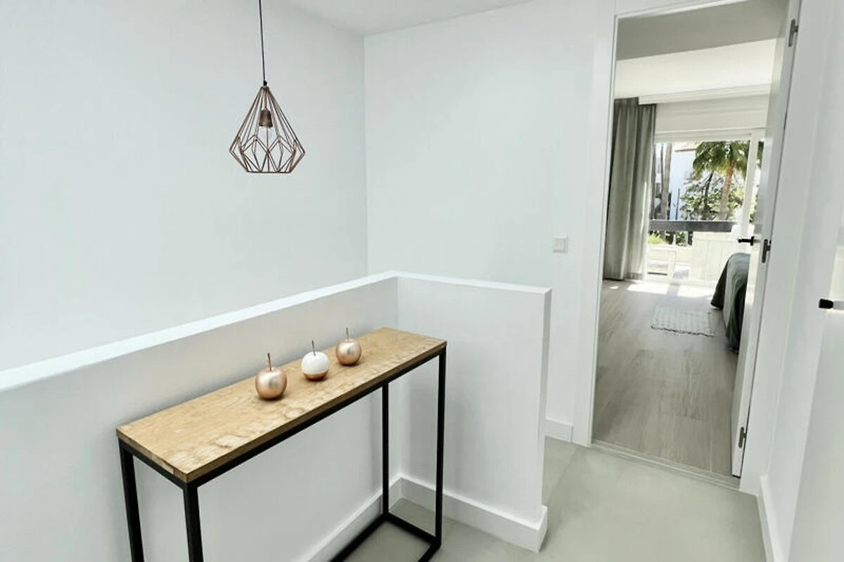 Nur wenige Schritte vom goldenen Sandstrand der Costa del Sol entfernt, ist dieses wunderschön renovierte Stadthaus ein wahres Juwel für Ihren nächsten Strandurlaub. Stellen Sie sich vor, Sie wachen mit dem sanften Rauschen der Wellen auf, genießen Ihren Morgenkaffee auf einer der privaten Terrassen und spazieren nur 100 Meter zum Strand, um einen Tag voller Sonne und Entspannung zu verbringen. Umgeben von üppigen tropischen Gärten und mit direktem Zugang zu einem Gemeinschaftspool ist diese Unterkunft eine Oase für alle, die Ruhe und Komfort gleichermaßen suchen.