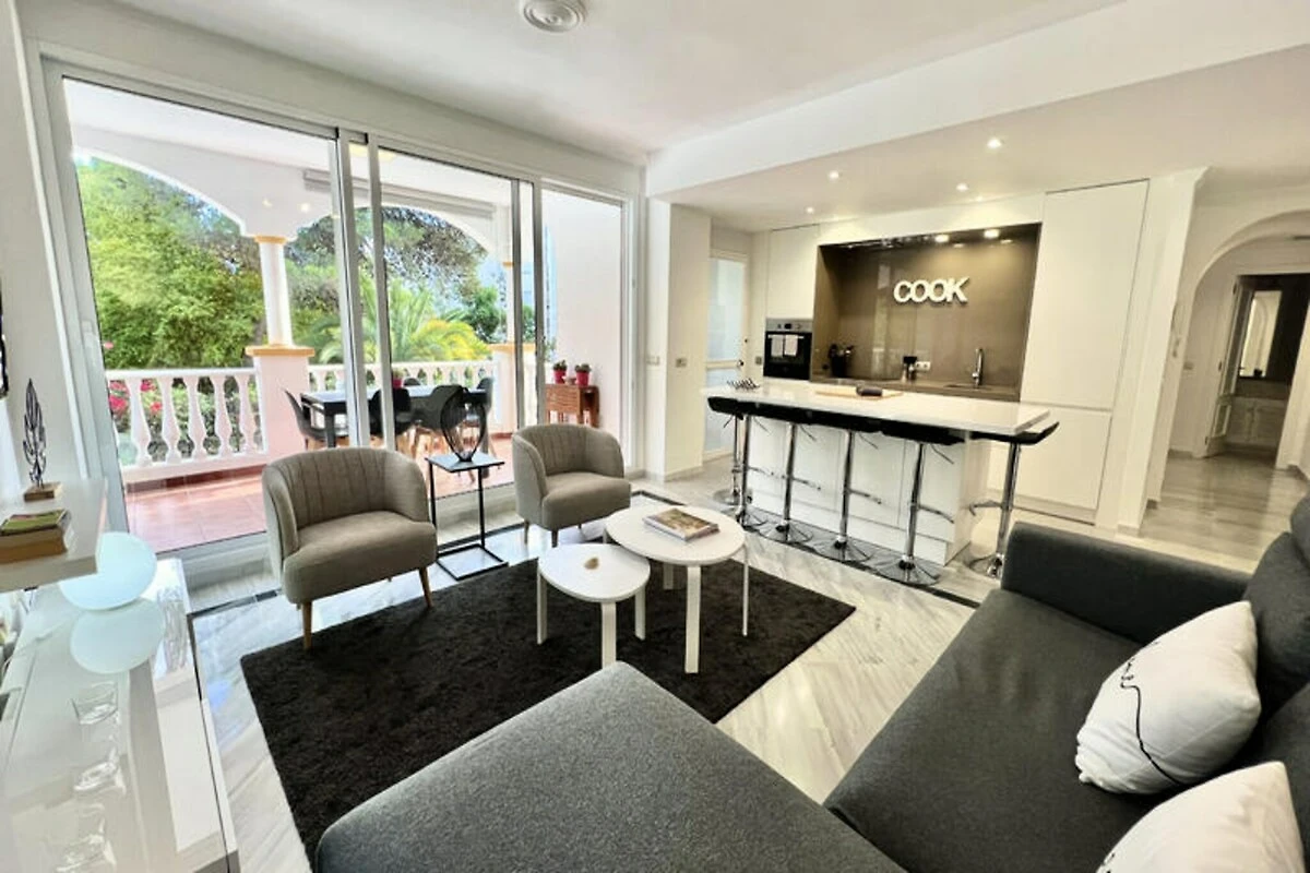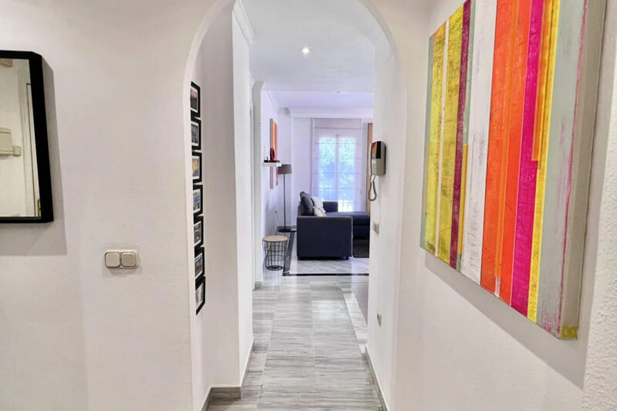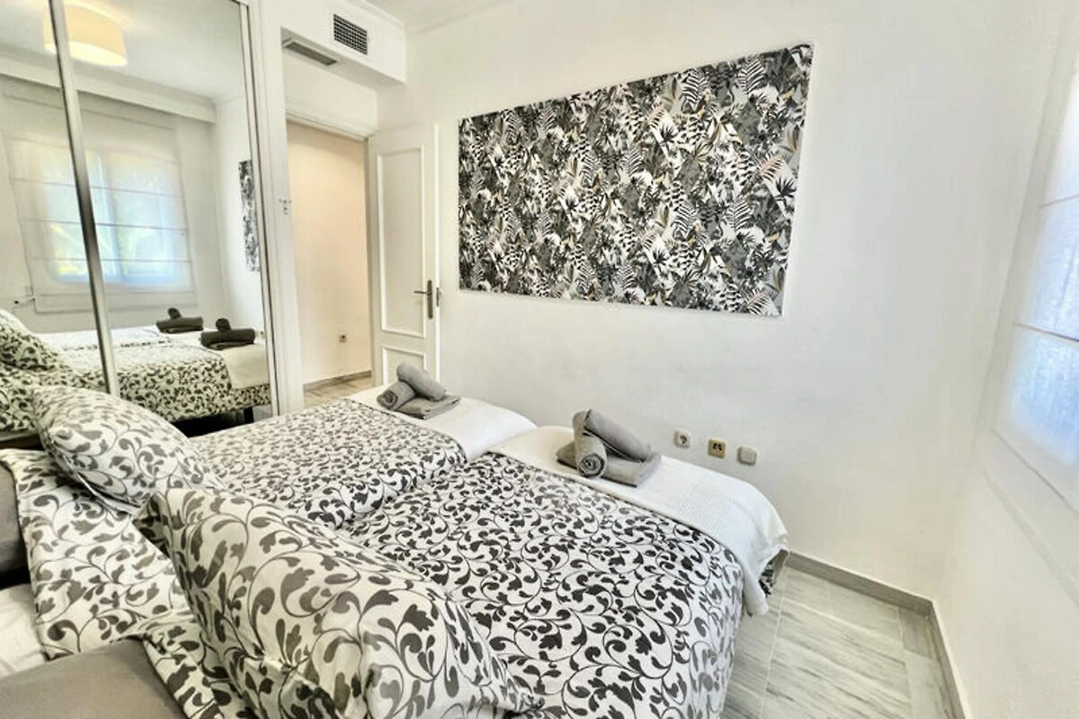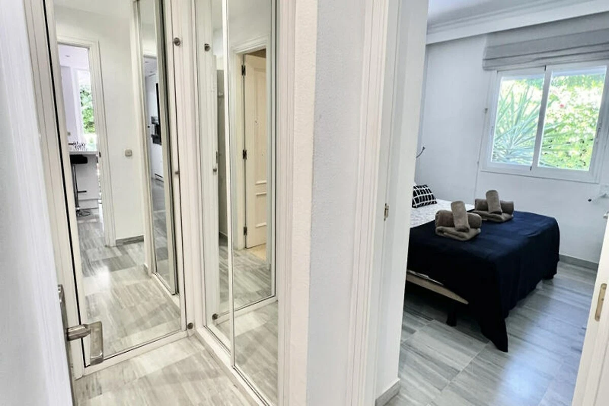 Im Herzen von Nagüeles, nur wenige Schritte vom lebhaften Viertel Puente Romano entfernt, bietet dieses geräumige Apartment einen ruhigen Rückzugsort inmitten des pulsierenden Charmes von Marbella. Stellen Sie sich vor, wie Sie Ihren Tag mit einem Spaziergang zu schicken Cafés und Restaurants beginnen oder einen kurzen Spaziergang zum Strand unternehmen, wo die Promenade das Zentrum von Marbella mit dem glamourösen Puerto Banús verbindet. Die schattige Terrasse des Apartments lädt zum Entspannen bei einem erfrischenden Getränk ein, umgeben vom sanften Rauschen tropischer Gärten und dem beruhigenden Plätschern von Wasserfällen. \n\nIm Inneren besticht das Apartment durch einen modernen, offenen Wohnbereich mit einer Küche im amerikanischen Stil – ideal, um nach einem erlebnisreichen Tag Mahlzeiten zuzubereiten. Drei schlicht eingerichtete Schlafzimmer und zwei Badezimmer bieten ausreichend Platz für Familien oder Freundesgruppen. Die Anlage selbst ist eine Oase der Entspannung mit einem großen Swimmingpool, Padel-Tennisplätzen und üppigen Gärten voller grüner Sittiche und exotischer Pflanzen, die an einen Dschungel in Costa Rica erinnern.\n\nDank der erstklassigen Lage, nur 100 Meter von Geschäften und Restaurants und 400 Meter vom Strand entfernt, ist alles, was Sie brauchen, bequem erreichbar. Ob Sie die Sonne am Pool genießen, das pulsierende Nachtleben von Puente Romano erleben oder die historische Altstadt von Marbella erkunden möchten – dieses Apartment ist der perfekte Ausgangspunkt für Ihr Abenteuer an der Costa del Sol.\n\nBuchen Sie noch heute Ihren Aufenthalt und erleben Sie die perfekte Mischung aus Entspannung und Abenteuer in einem der begehrtesten Reiseziele Spaniens.