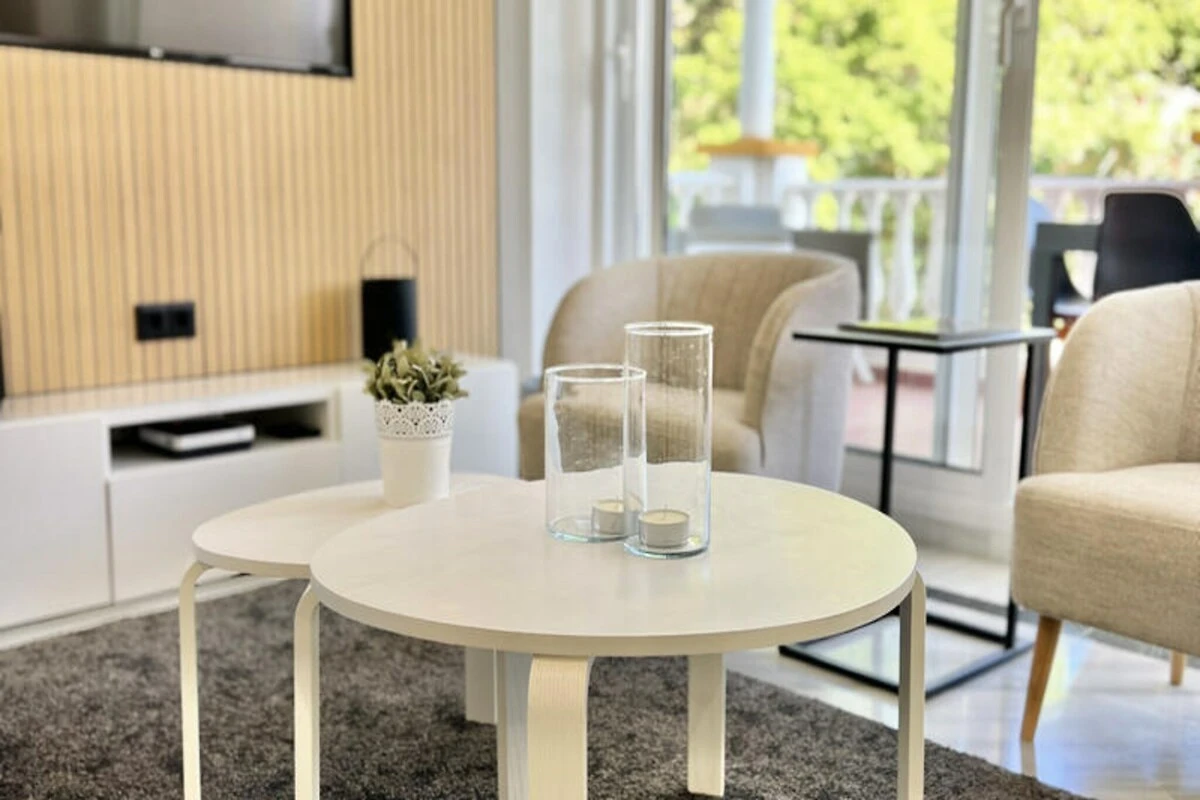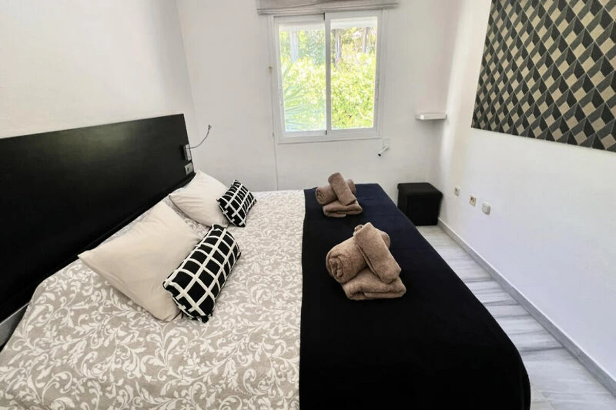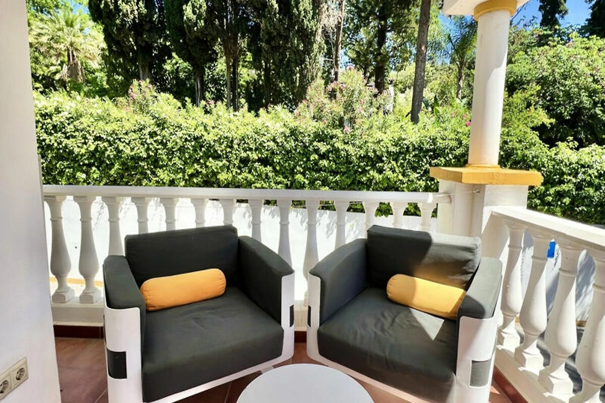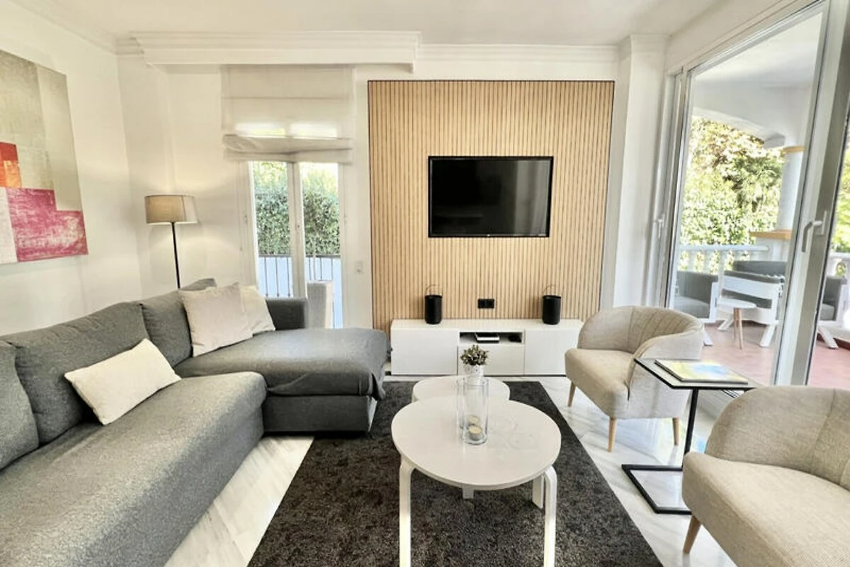 Im Herzen von Nagüeles, nur wenige Schritte vom lebhaften Viertel Puente Romano entfernt, bietet dieses geräumige Apartment einen ruhigen Rückzugsort inmitten des pulsierenden Charmes von Marbella. Stellen Sie sich vor, wie Sie Ihren Tag mit einem Spaziergang zu schicken Cafés und Restaurants beginnen oder einen kurzen Spaziergang zum Strand unternehmen, wo die Promenade das Zentrum von Marbella mit dem glamourösen Puerto Banús verbindet. Die schattige Terrasse des Apartments lädt zum Entspannen bei einem erfrischenden Getränk ein, umgeben vom sanften Rauschen tropischer Gärten und dem beruhigenden Plätschern von Wasserfällen. \n\nIm Inneren besticht das Apartment durch einen modernen, offenen Wohnbereich mit einer Küche im amerikanischen Stil – ideal, um nach einem erlebnisreichen Tag Mahlzeiten zuzubereiten. Drei schlicht eingerichtete Schlafzimmer und zwei Badezimmer bieten ausreichend Platz für Familien oder Freundesgruppen. Die Anlage selbst ist eine Oase der Entspannung mit einem großen Swimmingpool, Padel-Tennisplätzen und üppigen Gärten voller grüner Sittiche und exotischer Pflanzen, die an einen Dschungel in Costa Rica erinnern.\n\nDank der erstklassigen Lage, nur 100 Meter von Geschäften und Restaurants und 400 Meter vom Strand entfernt, ist alles, was Sie brauchen, bequem erreichbar. Ob Sie die Sonne am Pool genießen, das pulsierende Nachtleben von Puente Romano erleben oder die historische Altstadt von Marbella erkunden möchten – dieses Apartment ist der perfekte Ausgangspunkt für Ihr Abenteuer an der Costa del Sol.\n\nBuchen Sie noch heute Ihren Aufenthalt und erleben Sie die perfekte Mischung aus Entspannung und Abenteuer in einem der begehrtesten Reiseziele Spaniens.
