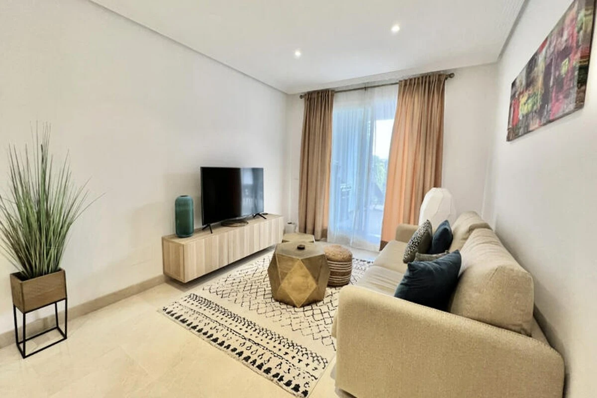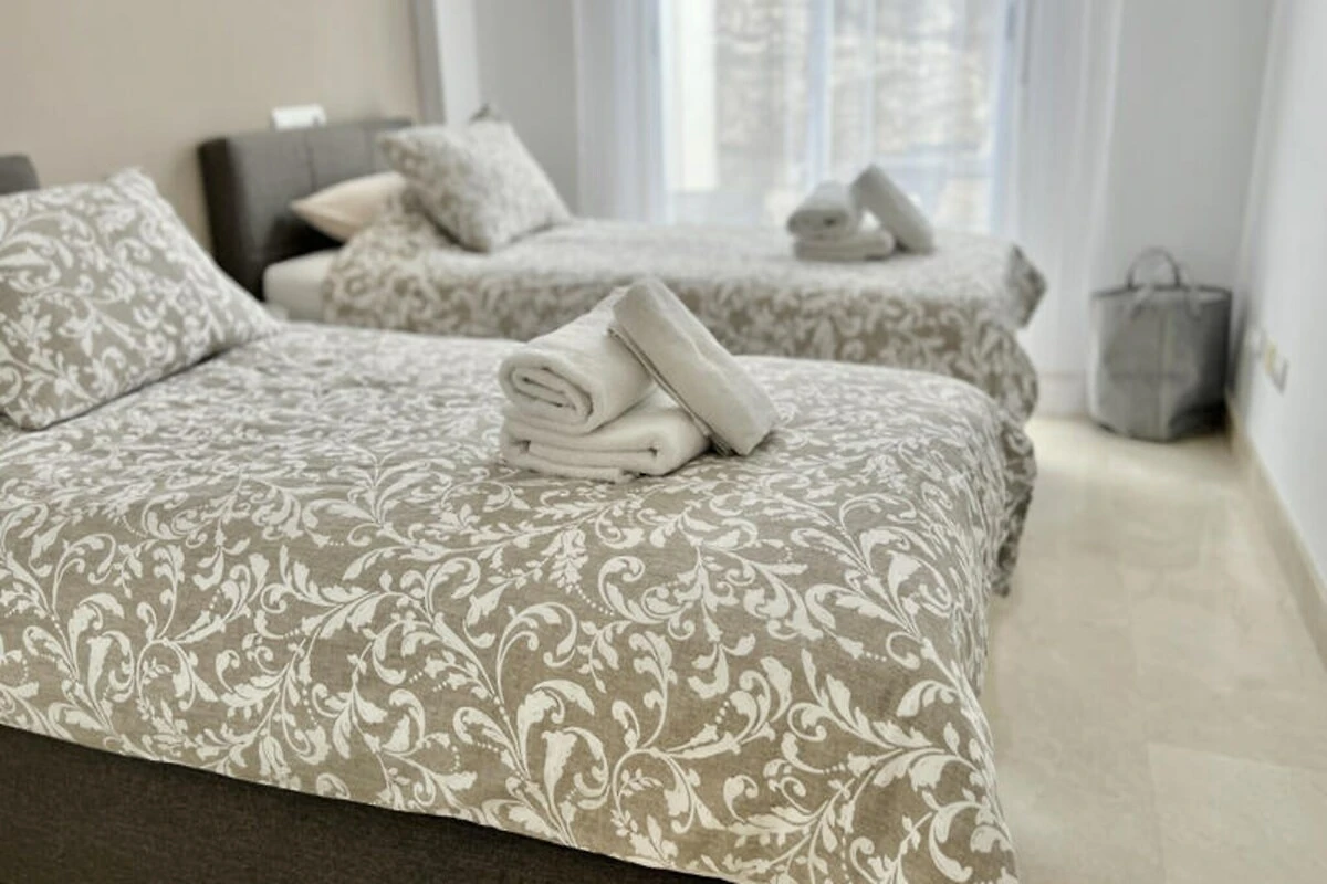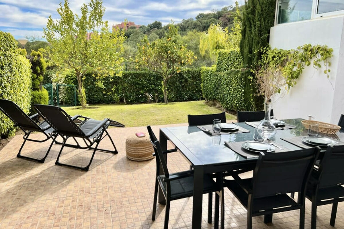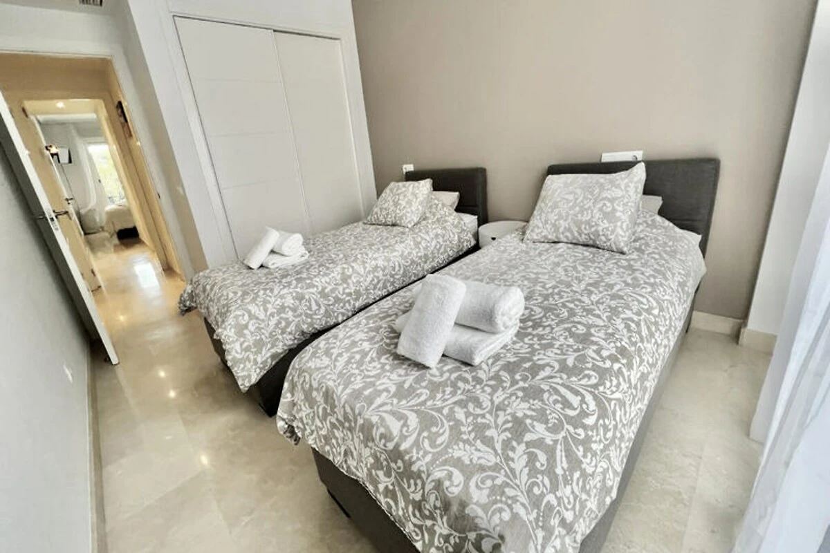 Hoch über den glitzernden Stränden der Costa del Sol bietet dieses ruhige Apartment mit zwei Schlafzimmern in La Mairena einen idyllischen Rückzugsort für Reisende, die Entspannung und Abenteuer gleichermaßen suchen. Umgeben von üppigem Grün und mit Panoramablick auf Küste und Berge lädt die Unterkunft zum Verweilen im privaten Garten oder zum Sonnenbaden auf der Terrasse mit Grillmöglichkeit für Mahlzeiten im Freien ein. Ob Sie Ihren Morgenkaffee genießen oder ein Abendessen bei Sonnenuntergang – die Terrasse ist der perfekte Ort, um den mediterranen Charme aufzusaugen. \n\nDas Apartment ist durchdacht gestaltet und verfügt über zwei Badezimmer, die Komfort und Bequemlichkeit für Familien oder kleine Gruppen gewährleisten. Die hellen und luftigen Wohnräume werden durch moderne Annehmlichkeiten ergänzt, und der Zugang zu zwei Gemeinschaftspools – darunter ein Kinderpool – macht das Angebot noch attraktiver. Für alle, die aktiv bleiben möchten, bietet der nahegelegene El Soto Club kostenlosen Zugang zu einer Reihe von Sporteinrichtungen, darunter ein 9-Loch-Golfplatz, Tennis- und Padelplätze, ein Fitnessraum, eine Sauna, ein Whirlpool und eine Boulebahn. Schläger stehen Ihnen im Apartment zur Verfügung, sodass Sie sofort mit einer Partie loslegen können. Anschließend können Sie im Clubhaus bei einem erfrischenden Getränk oder einer köstlichen Mahlzeit entspannen. Die Unterkunft liegt ideal in der Nähe einiger der schönsten Strände der Costa del Sol und ist perfekt zum Sonnenbaden oder für Strandspaziergänge. Ein Fahrzeug wird empfohlen, um die lebhaften Städte, kulturellen Sehenswürdigkeiten und versteckten Juwelen der Region zu erkunden. Ob Sie Abenteuer oder Ruhe suchen – dieses Apartment bietet Ihnen beides. Mit seiner einladenden Atmosphäre, der atemberaubenden Umgebung und den durchdachten Annehmlichkeiten ist es ein Ort, an dem unvergessliche Erinnerungen entstehen.