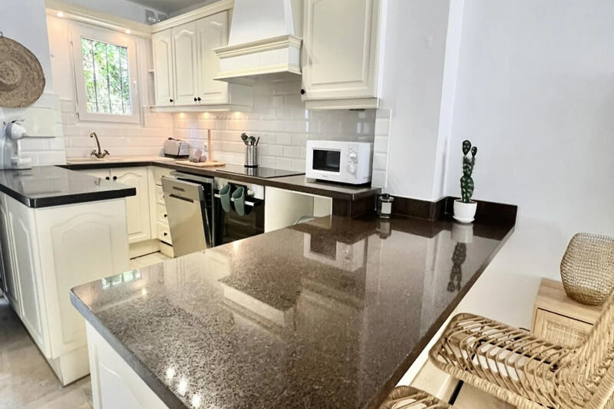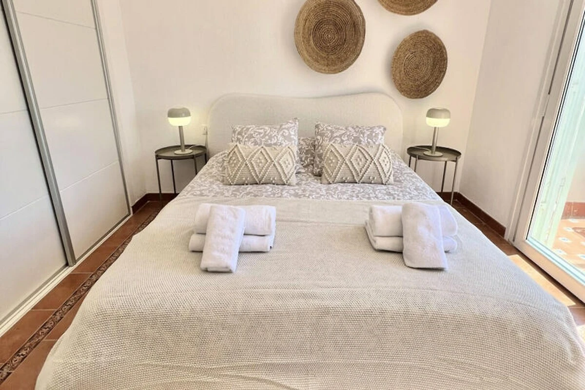 Tauchen Sie ein in mediterranes Flair in diesem wunderschön renovierten Doppelhaus, wo Sonne und Entspannung Hand in Hand gehen. In bester Lage, nur wenige Schritte von Supermärkten, lebhaften Bars, charmanten Restaurants, einer Apotheke und der Bushaltestelle entfernt, können Sie Ihr Auto getrost stehen lassen und den entspannten spanischen Lebensstil in vollen Zügen genießen. Der goldene Sandstrand ist ebenfalls fußläufig erreichbar und macht das Haus zum perfekten Rückzugsort für Sonnenanbeter und Meeresliebhaber.