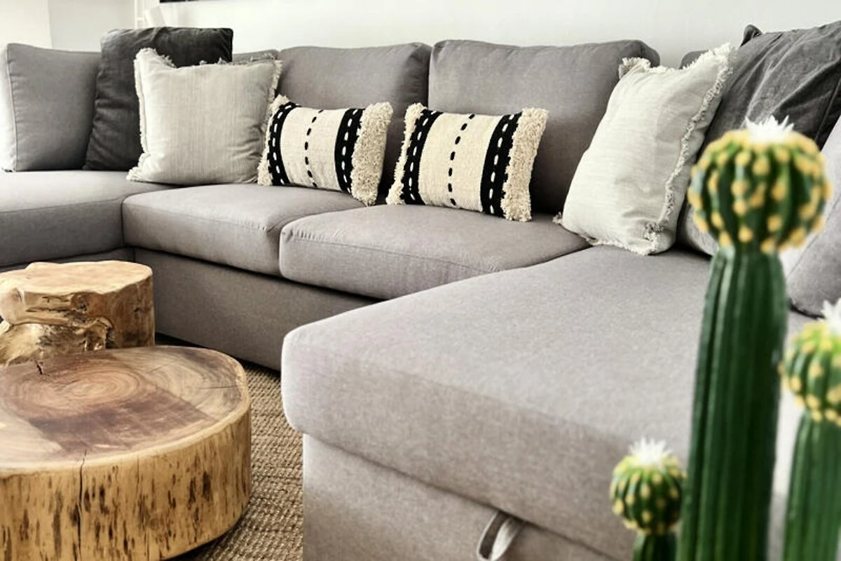 Das geräumige Haus erstreckt sich über drei Etagen und bietet vier komfortable Schlafzimmer, drei moderne Badezimmer und ein Gäste-WC – ideal für Familien oder Freundesgruppen. Die Einrichtung im Boho-Chic-Stil schafft eine warme und einladende Atmosphäre, während die helle, offene Küche und der Wohnbereich den perfekten Rahmen für unvergessliche gemeinsame Momente bieten. Von der Terrasse aus haben Sie direkten Zugang zum üppigen Gemeinschaftsgarten und einem glitzernden Swimmingpool, der in den Sommermonaten geöffnet ist. Bitte beachten Sie, dass die Treppe relativ steil ist, was dem Haus einen Hauch von traditionellem Charme verleiht.
