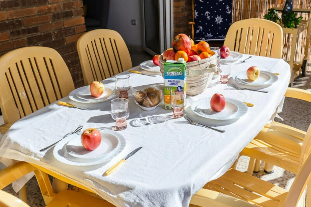 Erwachen Sie mit dem beruhigenden Rauschen der Wellen und dem goldenen Glanz des Mittelmeers in diesem reizvollen Apartment am Strand von Guardamar del Segura. Nur wenige Schritte vom Sandstrand entfernt, bietet dieser charmante Rückzugsort eine ruhige Oase für Familien und Gruppen, die Sonne, Meer und Entspannung suchen. Die 20 m² große Terrasse lädt Sie ein, Mahlzeiten im Freien zu genießen, während Sie den endlosen blauen Horizont betrachten und unvergessliche Momente unter der spanischen Sonne erleben. Die lebhafte und dennoch ruhige Atmosphäre von Guardamar macht es zu einem idealen Reiseziel für alle Altersgruppen.