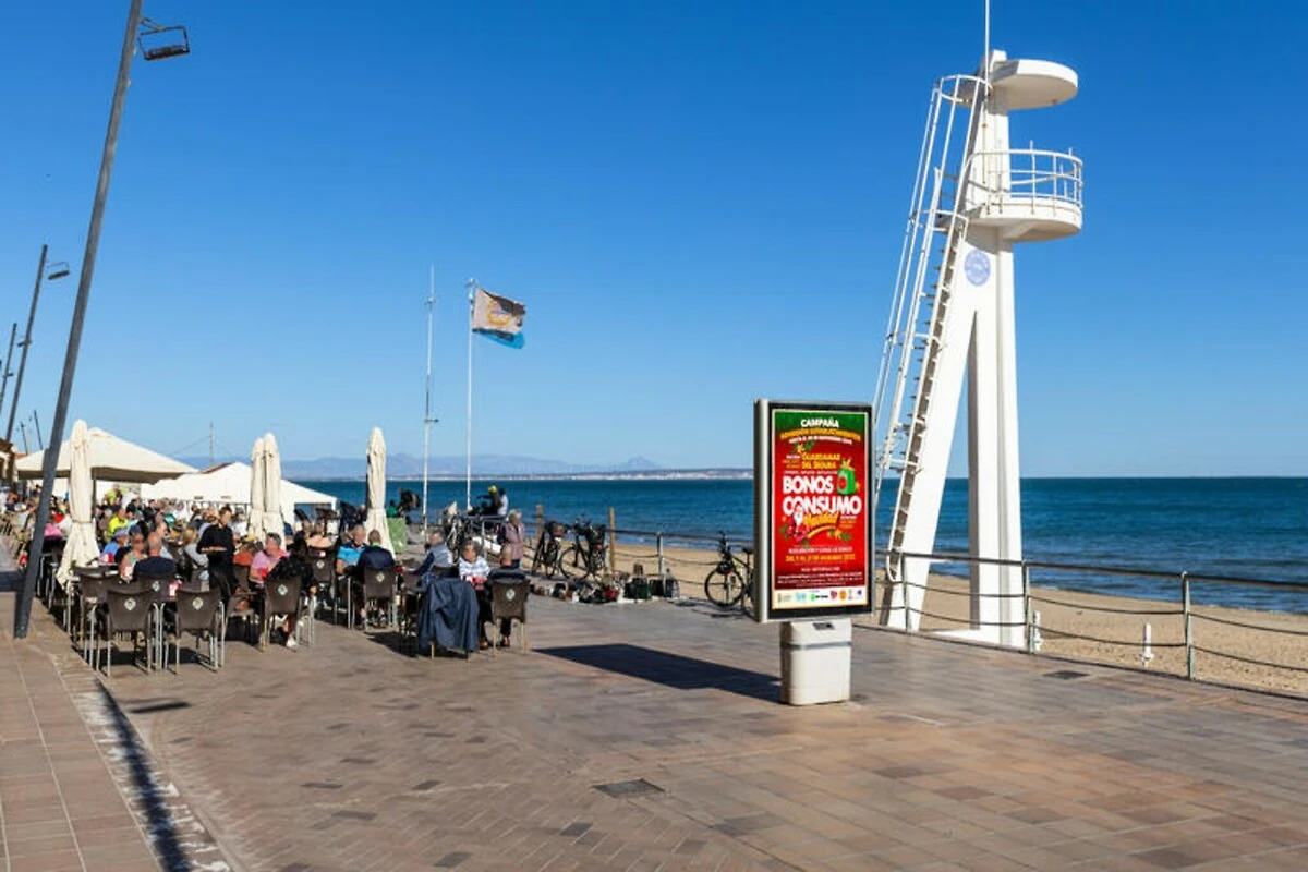 Auch abseits des Apartments ist die Lage unschlagbar. Spazieren Sie zu den nahegelegenen Naturparks, erkunden Sie die charmante Promenade oder genießen Sie eine Mahlzeit in einem der vielen Strandrestaurants. Abenteuerlustige finden in der Umgebung vielfältige Aktivitäten, von Wassersport und Golf bis hin zur Erkundung der nahegelegenen Salzseen und des Flusses Segura. Der internationale Flughafen Alicante ist nur 35 Kilometer entfernt und ermöglicht so eine bequeme und stressfreie Anreise. Ob Sie sich am Meer erholen oder die lebendige Umgebung entdecken möchten – dieses Apartment ist der perfekte Ausgangspunkt für einen unvergesslichen Spanienurlaub.