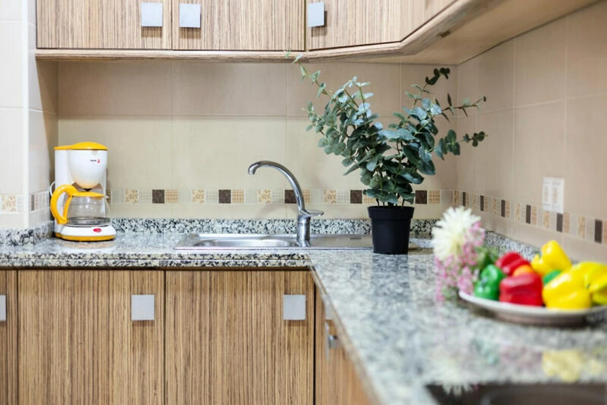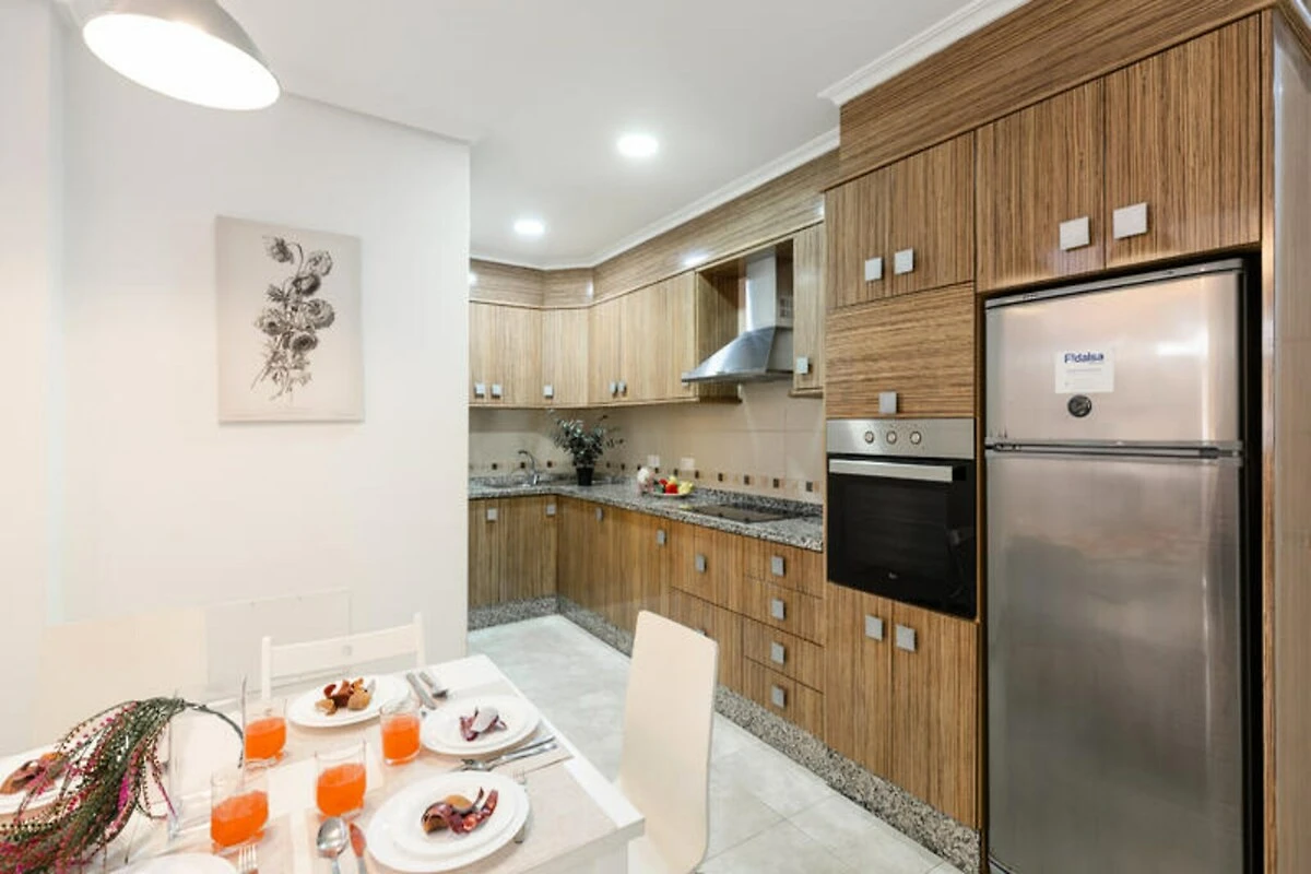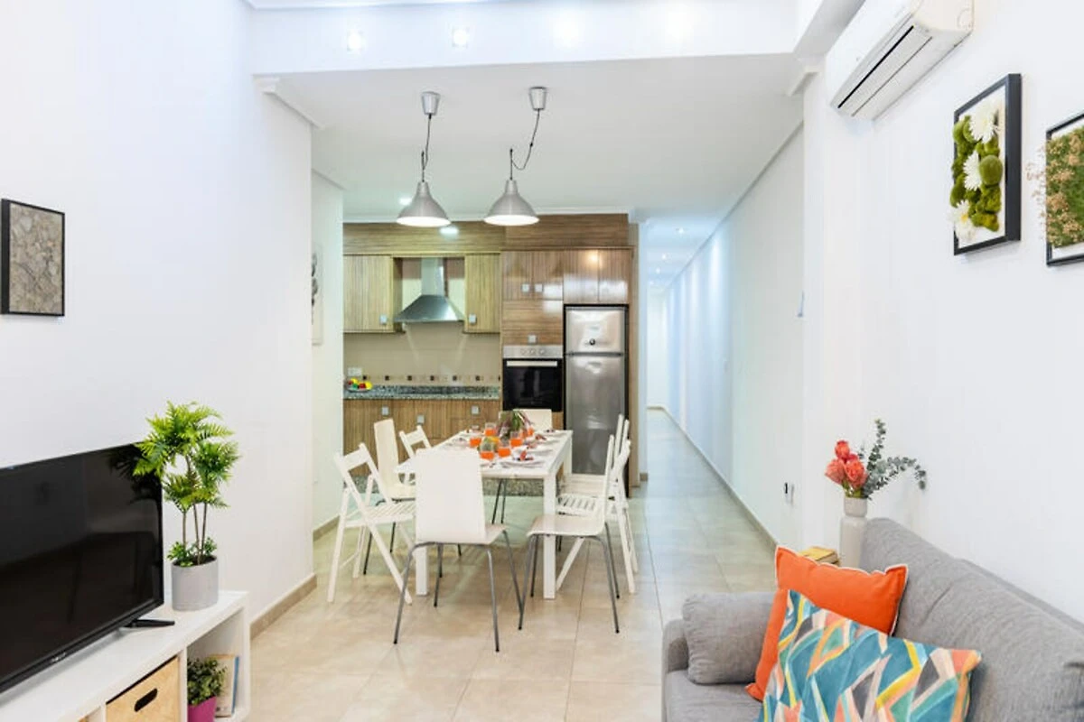 Im Herzen von Guardamar del Segura, wo die mediterrane Brise sanft durch die Straßen weht, bietet dieses moderne Apartment den perfekten Rückzugsort für Familien und Gruppen, die sich nach einem sonnigen Urlaub sehnen. Guardamar ist bekannt für seine 15 Kilometer langen, unberührten weißen Sandstrände und seine lebendige Kultur und somit ein idyllisches Reiseziel zum Entspannen und Entdecken. Genießen Sie von Ihrer Terrasse aus die warme spanische Sonne und die lebhafte Atmosphäre dieser charmanten Küstenstadt. Das Apartment verfügt über drei geräumige Schlafzimmer und zwei Badezimmer und bietet bequem Platz für bis zu acht Gäste. Die stilvolle und komfortable Einrichtung besticht durch geschmackvolle Möbel und moderne Annehmlichkeiten. Die offene Küche mit Cerankochfeld, Kühlschrank, Mikrowelle, Backofen und Geschirrspüler lädt dazu ein, köstliche Mahlzeiten mit frischen, regionalen Zutaten zuzubereiten. Zusätzliche Annehmlichkeiten wie WLAN, Klimaanlage, Wäschetrockner und eine private Garage sorgen für einen unbeschwerten Aufenthalt. Die 10 m² große Terrasse ist ideal, um den Morgenkaffee zu genießen oder nach einem erlebnisreichen Tag zu entspannen.\n\nTreten Sie vor die Tür und Sie erreichen alles, was Sie brauchen, bequem zu Fuß. Der traumhafte Strand Playa de Guardamar mit seinem goldenen Sand und kristallklaren Wasser ist nur 300 Meter entfernt. Erkunden Sie den nahegelegenen Parque Reina Sofia, einen ruhigen Naturpark mit artenreicher Tierwelt, oder schlendern Sie zum Supermarkt Mercadona und den charmanten Restaurants, um authentische mediterrane Küche zu genießen. Für alle, die es etwas abenteuerlicher mögen, sind der Wasserpark Torrevieja und die idyllischen Lagunas de la Mata nur eine kurze Autofahrt entfernt.\n\nOb Sie die Sonne genießen, die reiche Kultur der Costa Blanca entdecken oder einfach mit Ihren Lieben entspannen möchten – dieses Apartment ist der ideale Ausgangspunkt für einen unvergesslichen Urlaub. Lassen Sie sich von der Schönheit Guardamar del Segura verzaubern und schaffen Sie Erinnerungen, die ein Leben lang halten.