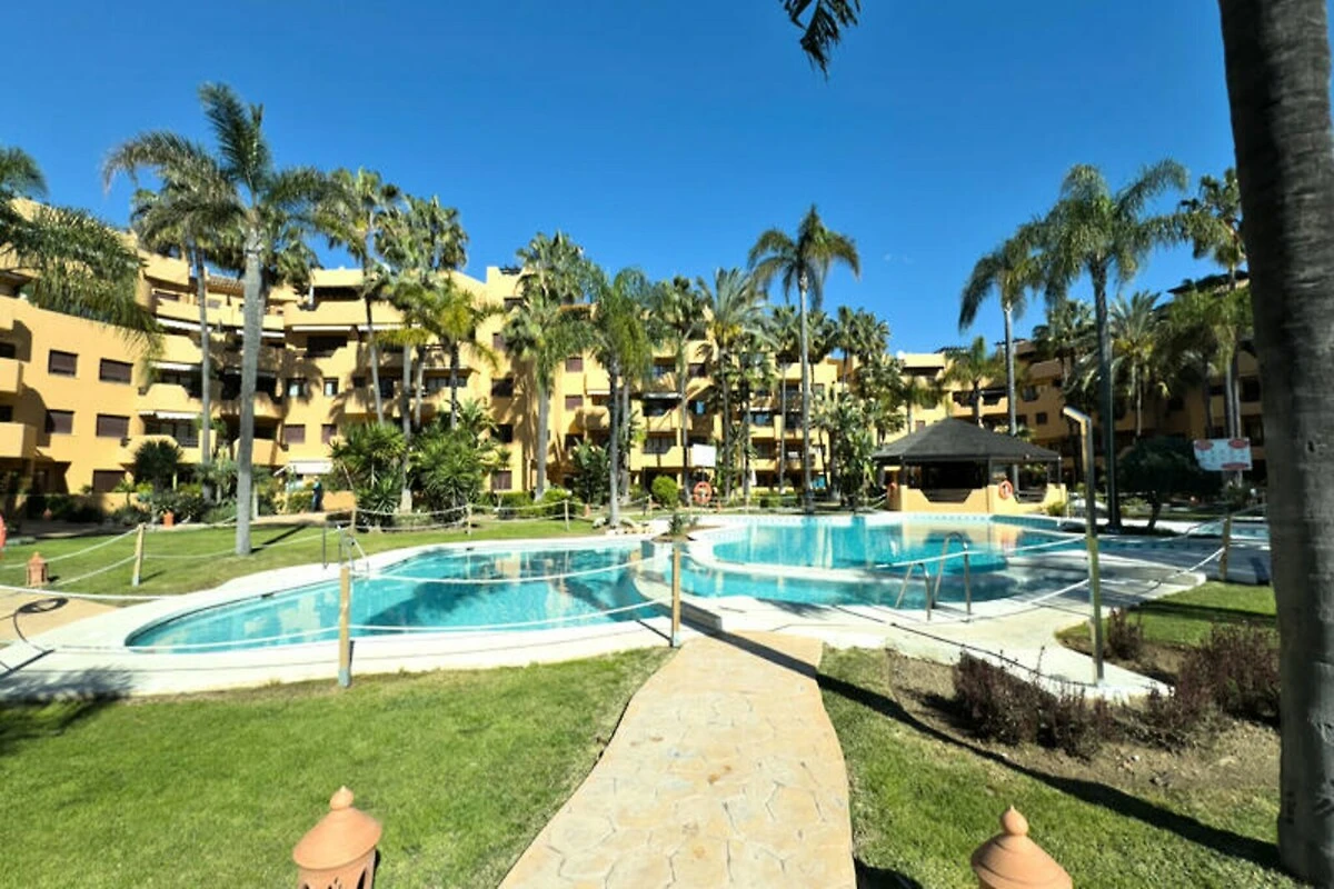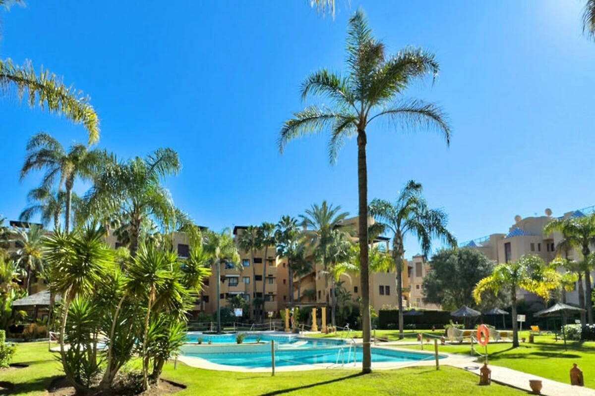 Stellen Sie sich vor, Sie wachen vom sanften Rauschen der Wellen auf und treten auf Ihre private Terrasse, um die mediterrane Sonne zu genießen. Dieses exquisite Apartment in der prestigeträchtigen Residenz Terrazas de Costalita bietet ein unvergleichliches Urlaubserlebnis direkt am goldenen Strand von Estepona. Umgeben von üppigen Gärten und mit direktem Zugang zum Meer ist es der perfekte Rückzugsort für alle, die Entspannung und Eleganz an der Costa del Sol suchen. In unmittelbarer Nähe zum renommierten Tennisclub Villa Padierna und dem eleganten Mett Hotel gelegen, vereint die Unterkunft Komfort und Luxus.