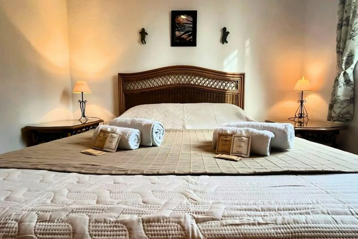 Im Inneren verbindet die Villa Blanca auf harmonische Weise authentischen Charme mit modernem Komfort. Das geräumige, lichtdurchflutete Wohnzimmer bietet mehrere gemütliche Sitzecken zum Entspannen oder für angeregte Gespräche. Die voll ausgestattete Küche mit Geschirrspüler, Backofen und Mikrowelle ermöglicht die mühelose Zubereitung von Mahlzeiten und bewahrt gleichzeitig ihren rustikalen Charme. Die Villa bietet Platz für bis zu sechs Gäste in zwei Doppelzimmern, eines davon mit eigenem Bad, und einem Zweibettzimmer. Klimaanlage und WLAN sind im gesamten Haus verfügbar und sorgen für einen komfortablen und vernetzten Aufenthalt.