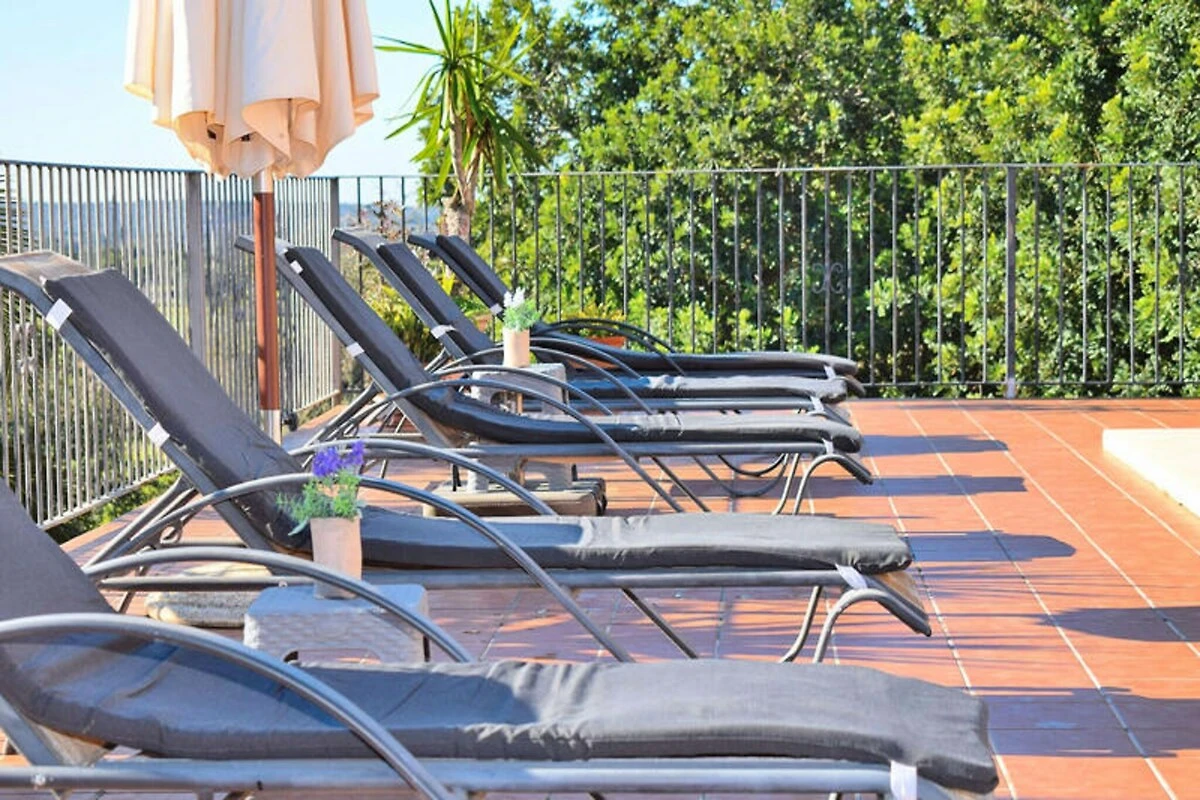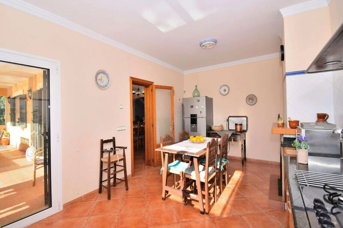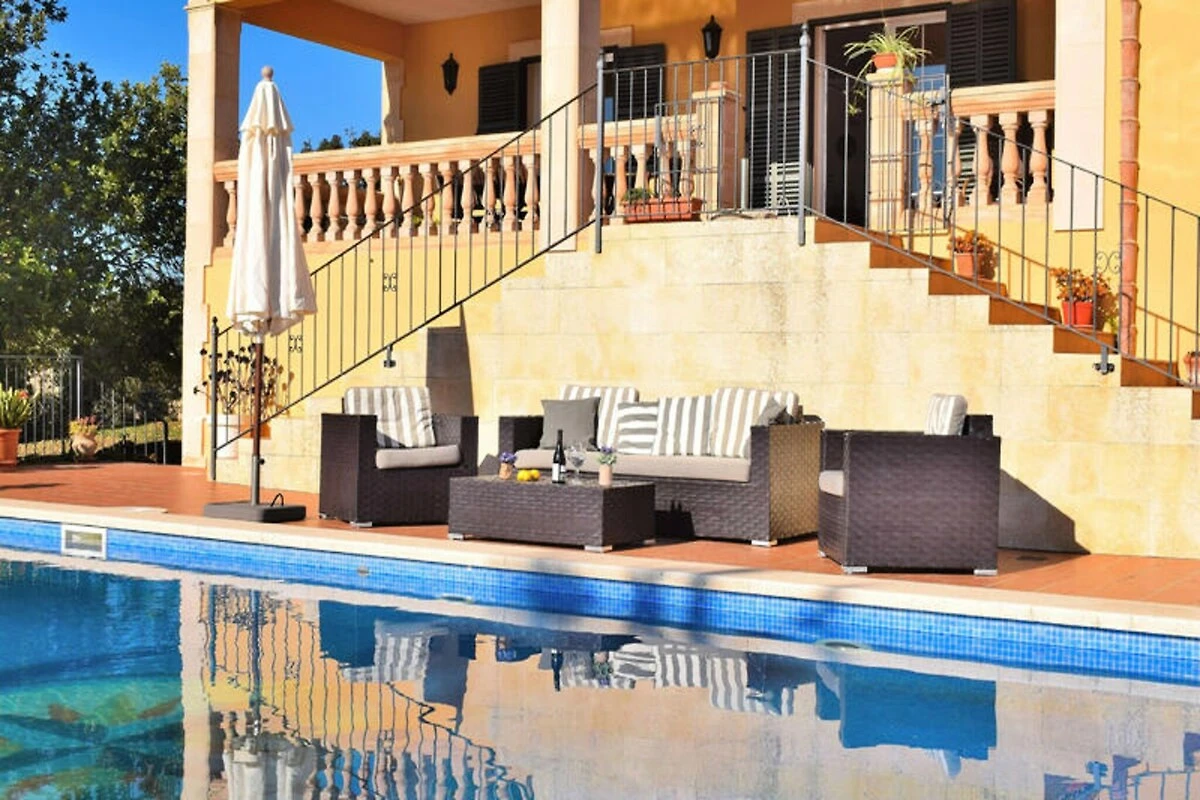Tauchen Sie ein in das Herz der mallorquinischen Landschaft und entdecken Sie dieses bezaubernde Landhaus in Cas Concos, wo rustikaler Charme auf modernen Komfort trifft. Umgeben von Weinbergen und sanften Hügeln bietet dieses Anwesen einen ruhigen Rückzugsort für Familien und Gruppen, die Entspannung und authentisches Inselleben suchen. Erwachen Sie mit den sanften Klängen der Natur und genießen Sie atemberaubende Ausblicke von den Terrassen auf beiden Etagen, die die Schönheit der südlichen Landschaft Mallorcas perfekt einfangen. Ob Sie das nahegelegene Dorf erkunden oder am Pool entspannen – dieses Landhaus lädt Sie ein, die Essenz des mediterranen Lebens zu erleben. \n\nIm Inneren besticht das Haus durch einen großzügigen und einladenden Grundriss. Das Erdgeschoss verfügt über eine große Eingangshalle, ein gemütliches Wohn-/Esszimmer und eine voll ausgestattete Küche, die sich ideal für die Zubereitung von Mahlzeiten mit regionalen Zutaten eignet. Ein Zweibettzimmer und ein Badezimmer mit Dusche vervollständigen diese Etage. Im Obergeschoss befinden sich drei weitere Schlafzimmer – zwei mit Doppelbetten und eines mit zwei Einzelbetten – sowie zwei Badezimmer mit Badewanne. Dank der Klimaanlage ist jeder Winkel des Hauses auf Komfort und Entspannung ausgelegt. Treten Sie hinaus und entdecken Sie das wahre Highlight dieses Anwesens: die weitläufigen Außenbereiche. Der üppige Garten und der Grillplatz bieten den perfekten Rahmen für unvergessliche Mahlzeiten unter dem Sternenhimmel, während der große Swimmingpool und die Sonnenliegen zum Entspannen einladen. Ob Sie die Sonne genießen oder sich im Wasser erfrischen möchten – die Außenbereiche versprechen unzählige Momente der Ruhe und Freude. Nur 20 Autominuten von einigen der schönsten Strände Mallorcas und in Gehweite des Dorfes Cas Concos gelegen, ist dieses Landhaus der ideale Ausgangspunkt, um die natürliche Schönheit und die kulturellen Schätze der Insel zu erkunden. Von Kopfsteinpflastergassen und lokalen Märkten bis hin zu malerischen Wanderwegen und Küstenabenteuern bietet jeder Tag neue Möglichkeiten, unvergessliche Erinnerungen zu schaffen. Machen Sie dieses charmante Refugium zu Ihrem zweiten Zuhause und lassen Sie sich vom Zauber Mallorcas verzaubern.
