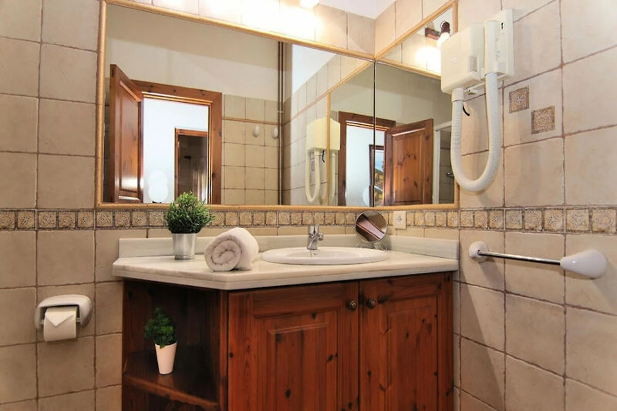 Inmitten der idyllischen Landschaft Mallorcas bietet diese atemberaubende Steinvilla einen traumhaften Rückzugsort, nur 3 Kilometer vom charmanten Dorf Ariany entfernt. Umgeben von goldenen Feldern und friedvollen Landschaften lädt das Anwesen dazu ein, die authentische Schönheit der Insel abseits der touristischen Hotspots zu erleben. Hier trägt die sanfte Brise den Duft mediterraner Flora herüber und schafft eine friedliche Oase zum Entspannen und Erkunden. Die 230 Quadratmeter große Villa ist durchdacht gestaltet und vereint modernen Komfort mit traditionellem Charme. Sie verfügt über drei geschmackvoll eingerichtete Schlafzimmer mit zwei Doppelbetten und zwei Einzelbetten für bis zu sechs Gäste. Zwei Badezimmer, eines mit Badewanne und das andere mit Dusche, sorgen für Komfort, während die voll ausgestattete Küche und der gemütliche Wohn-/Essbereich alles für einen angenehmen Aufenthalt bieten. Sat-TV, Highspeed-Internet und Klimaanlage in den Schlafzimmern erfüllen Ihre modernen Bedürfnisse, während der Kamin an kühleren Abenden für wohlige Wärme sorgt. Nachhaltigkeit steht bei diesem Refugium im Mittelpunkt: Es wird vollständig mit Solarenergie betrieben. Treten Sie hinaus und entdecken Sie eine private Oase mit einem 8 x 4 Meter großen Swimmingpool, umgeben von Sonnenliegen, einem großzügigen Grillplatz und einem Spielbereich mit Rutsche und Schaukel für die kleinen Gäste. Fahrräder stehen bereit, um die malerische Umgebung zu erkunden, und der weitläufige Garten lädt zum Sternegucken oder zum Genießen der lauen Abende Mallorcas ein. Ob Sie aktive Abenteuer oder ruhige Momente suchen – dieses Anwesen bietet Ihnen ein unvergessliches Erlebnis. Die Villa liegt in der Nähe von Ariany, einem malerischen Dorf, das für seine ruhigen Gassen und seinen lokalen Charme bekannt ist, und bietet einfachen Zugang zu historischen Stätten und Ausflugszielen auf ganz Mallorca. Mit ihrer Mischung aus ländlicher Authentizität und modernem Komfort ist dieses Refugium die perfekte Wahl für Familien, Paare oder Freunde, die in die friedliche Schönheit der Insel eintauchen möchten.