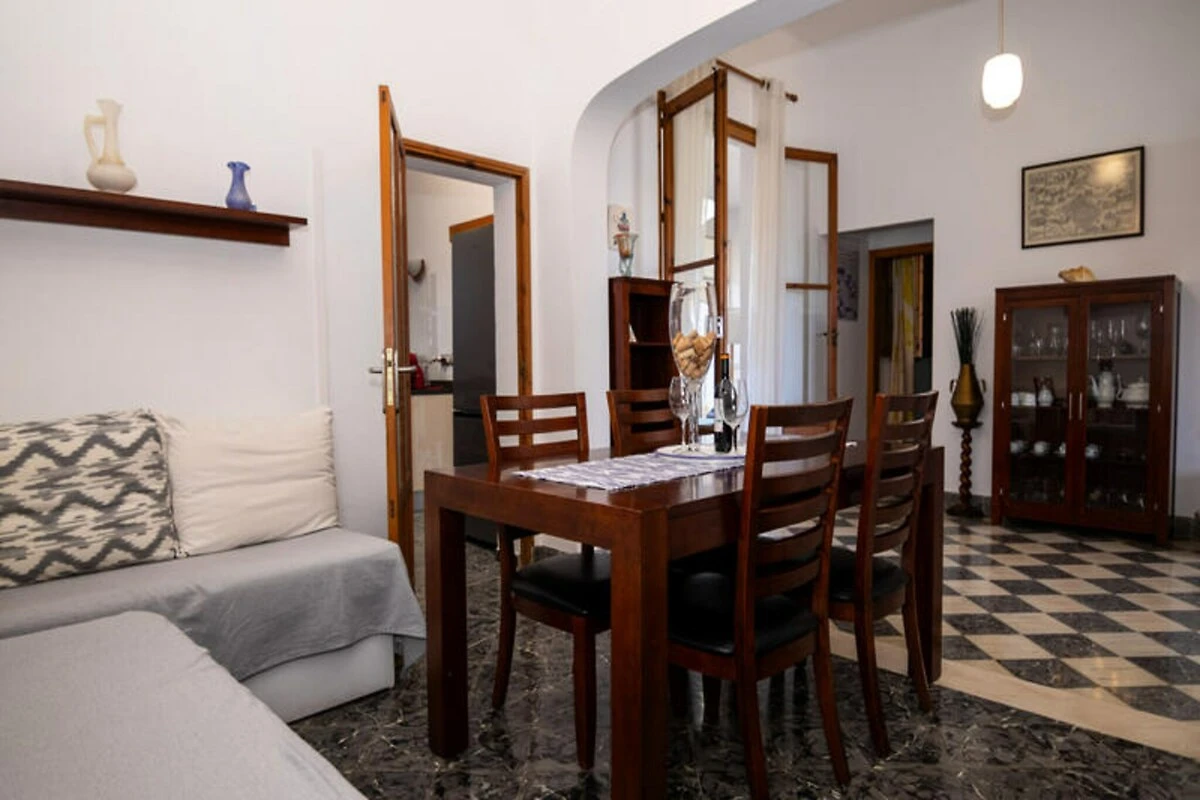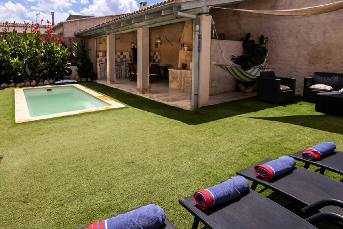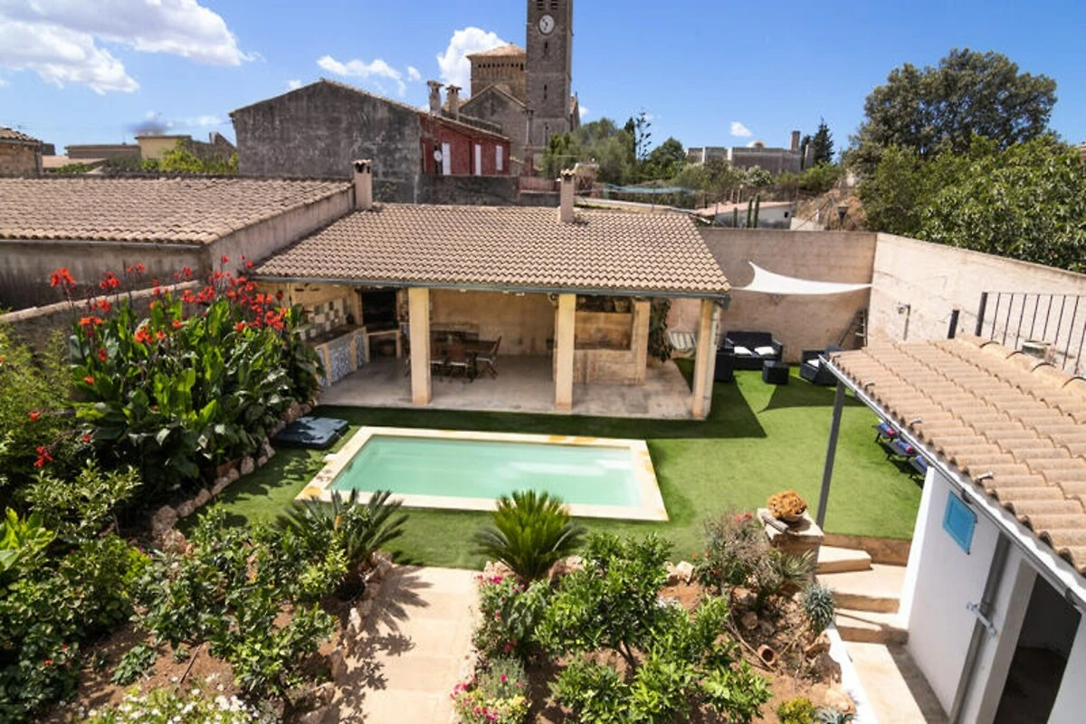 Im Herzen der idyllischen mallorquinischen Landschaft lädt diese charmante Villa in Ariany Sie ein, die perfekte Kombination aus Komfort und Ruhe zu erleben. Umgeben von goldenen Feldern und malerischen Landschaften bietet dieses Anwesen einen friedlichen Rückzugsort für Familien oder kleine Gruppen, die einen erholsamen Urlaub auf der Insel verbringen möchten. Erwachen Sie mit den sanften Klängen der Natur und genießen Sie die warme Mittelmeersonne auf Ihrer privaten Terrasse. Die 160 m² große Villa bietet mit ihren drei gemütlichen Schlafzimmern und zwei Badezimmern bequem Platz für bis zu vier Gäste. Das Wohnzimmer und zwei der Schlafzimmer sind mit einer Klimaanlage ausgestattet, die Sie in den Sommermonaten angenehm kühl hält. Die beiden Kamine im Wohnzimmer und in der Küche sorgen für eine behagliche Atmosphäre an kühleren Abenden. Die voll ausgestattete Küche mit modernen Geräten wie Kühlschrank, Backofen, Mikrowelle, Geschirrspüler und vielem mehr macht die Zubereitung von Mahlzeiten zum Vergnügen. Zur Unterhaltung bietet die Villa Sat-TV mit mehrsprachigen Kanälen und schnellen, kostenlosen Internetzugang. Treten Sie hinaus und entdecken Sie einen wunderschön gepflegten Außenbereich. Der private Pool lädt an sonnigen Tagen zu einer erfrischenden Abkühlung ein, während die große Terrasse mit Grill zum Essen im Freien mit Ihren Lieben einlädt. Das komplett umzäunte Grundstück garantiert Privatsphäre und Sicherheit, und sichere Parkplätze stehen Ihnen vor Ort zur Verfügung. \n\nDiese Villa liegt im ruhigen Dorf Ariany und ist der ideale Ausgangspunkt, um den authentischen Charme Mallorcas zu entdecken. Schlendern Sie durch die malerischen Gassen, tauchen Sie in die lokale Kultur ein oder unternehmen Sie Ausflüge zu den nahegelegenen historischen Sehenswürdigkeiten. Ob Sie Entspannung oder Abenteuer suchen – diese Unterkunft bietet den perfekten Startpunkt für ein unvergessliches Mallorca-Erlebnis.