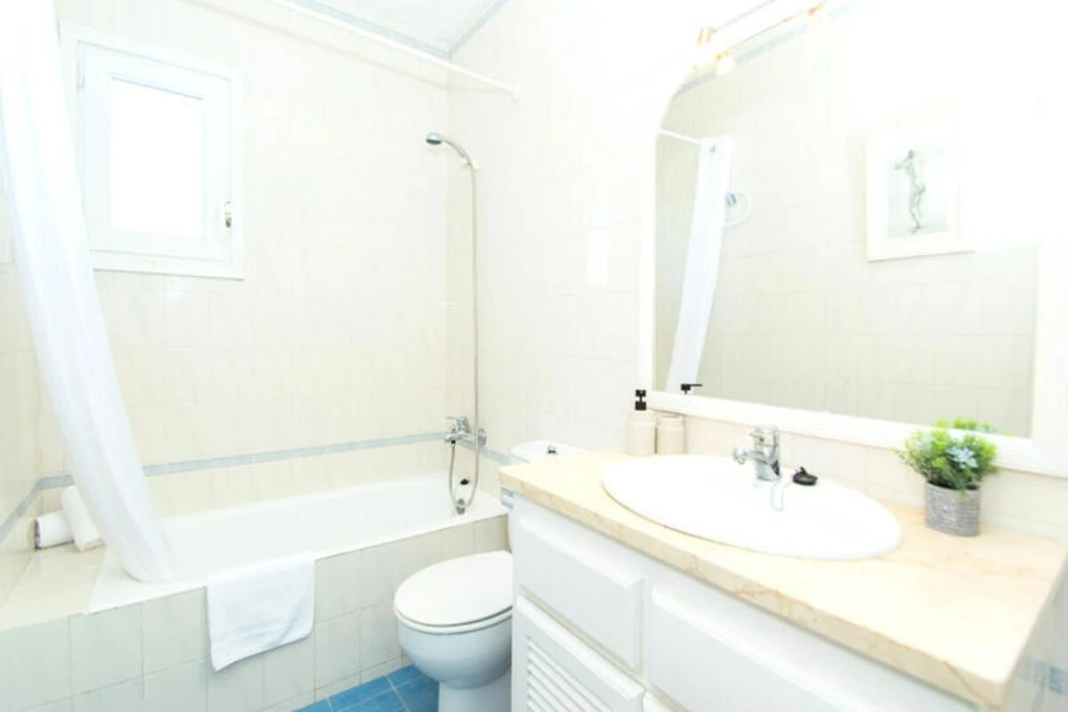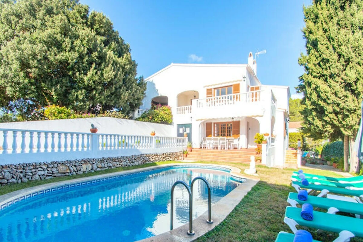 Umgeben von der idyllischen Schönheit von Cala Galdana bietet diese exquisite Villa einen ruhigen Rückzugsort für Familien und Freunde, die sich nach einem perfekten mediterranen Urlaub sehnen. Mit Blick auf den üppigen Garten und einem privaten Pool, der in der menorquinischen Sonne glitzert, lädt dieses Anwesen zum Entspannen und Erholen in einem der malerischsten Küstenorte Spaniens ein. Nur wenige Schritte vom lebhaften Zentrum von Cala Galdana entfernt, werden Sie vom Charme dieser familienfreundlichen Gegend verzaubert sein, wo sich natürliche Schönheit und moderner Komfort vereinen. Die Villa erstreckt sich über beeindruckende 232 m² und verfügt über sechs geräumige Schlafzimmer, die bequem Platz für bis zu zehn Gäste bieten. Das Interieur ist einladend und funktional zugleich und bietet eine separate Gasküche mit allem, was Sie zum Zubereiten köstlicher Mahlzeiten benötigen – vom Kühlschrank und Backofen bis hin zur Kaffeemaschine und dem Entsafter. Die Wohnräume sind durchdacht gestaltet und mit modernen Annehmlichkeiten wie WLAN, Sat-TV, Klimaanlage und einem gemütlichen Kamin für kühlere Abende ausgestattet. Draußen bieten der umzäunte Garten, die Terrasse und der Grillplatz den perfekten Rahmen für Mahlzeiten im Freien, während der private Pool eine erfrischende Abkühlung von der Sommerhitze bietet.\n\nDer Sandstrand von Cala Galdana ist nur 700 Meter entfernt und bietet kristallklares Wasser, ideal zum Schwimmen und Sonnenbaden. Wer die Umgebung erkunden möchte, erreicht die atemberaubenden Buchten Cala Mitjana, Cala Macarella und Cala Macarelleta in kurzer Fahrzeit. Jede von ihnen präsentiert die natürliche Pracht der Insel. In der Nähe finden Sie außerdem charmante Städtchen wie Ferreries, Ciutadella und Mahón, wo Sie die lokale Kultur und Küche entdecken können. Restaurants, Cafés und Supermärkte befinden sich in unmittelbarer Nähe – alles, was Sie brauchen, ist bequem erreichbar.\n\nOb Sie Entspannung am Pool, Abenteuer entlang der Küste oder Abende unter dem Sternenhimmel suchen, diese Villa in Cala Galdana verspricht ein unvergessliches Urlaubserlebnis. Lassen Sie sich von der sanften Meeresbrise und der Schönheit Menorcas verzaubern und schaffen Sie Erinnerungen, die ein Leben lang halten.