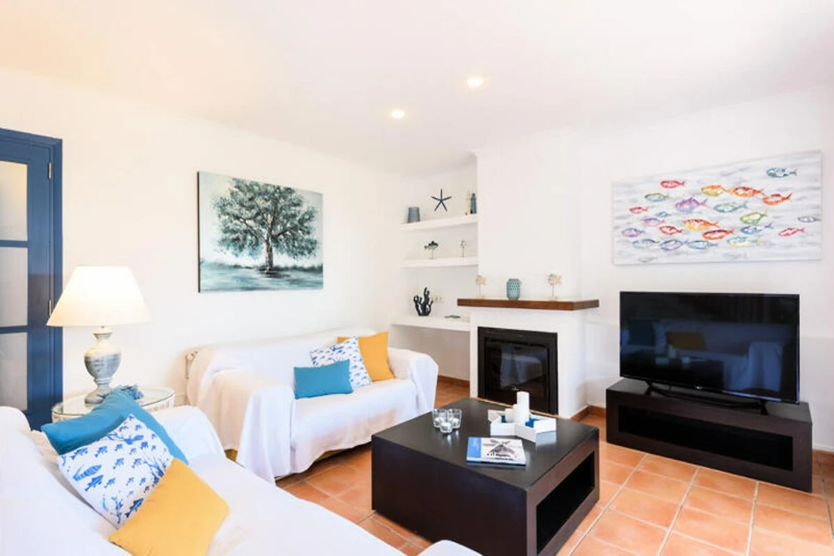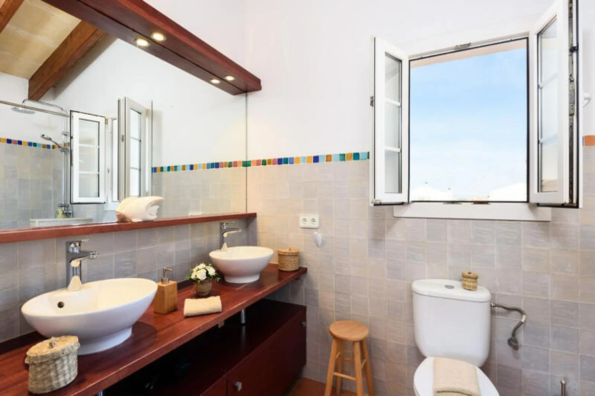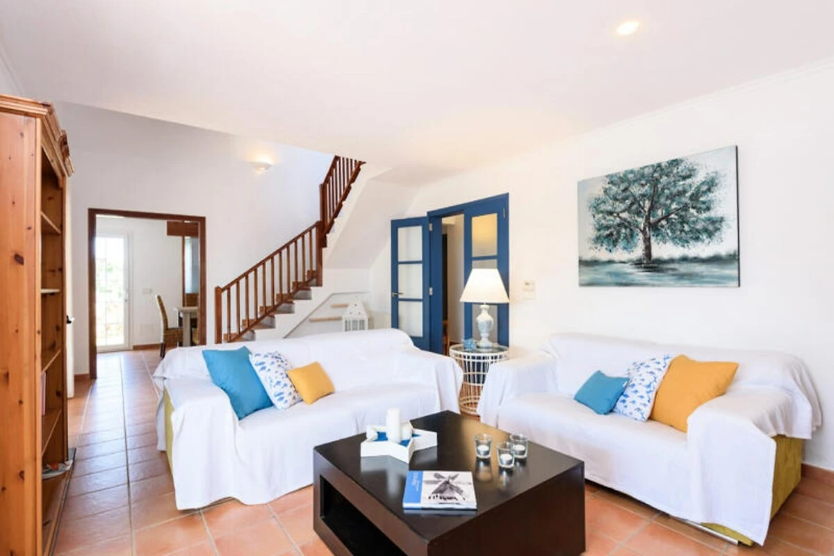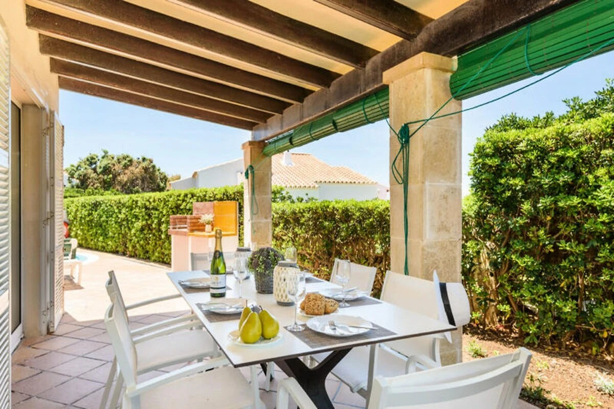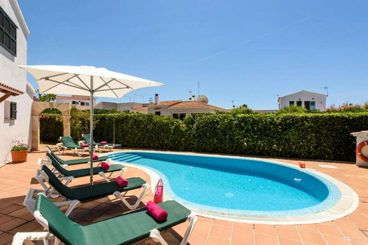 Eingehüllt in das goldene Licht des Mittelmeers bietet diese charmante Villa in Cap d'Artruix einen idyllischen Rückzugsort für Familien und Gruppen bis zu acht Personen. Mit ihrer großzügigen Raumaufteilung und dem ruhigen Blick in den Garten lädt dieses 160 m² große Anwesen zum Entspannen und Genießen des Küstencharmes von Menorca ein. Ob Sie am privaten Pool relaxen oder auf der Terrasse speisen – jeder Winkel dieser Villa ist auf Erholung und Komfort ausgelegt. Die Villa verfügt über vier helle und luftige Schlafzimmer mit modernen Annehmlichkeiten wie WLAN, Sat-TV mit internationalen Kanälen und Klimaanlage in ausgewählten Zimmern. Die voll ausgestattete Küche mit Cerankochfeld, Geschirrspüler und Kaffeemaschine ermöglicht die einfache Zubereitung köstlicher Mahlzeiten für Mahlzeiten im Freien. Zur Ausstattung gehören außerdem eine Waschmaschine, ein Grill und Gartenmöbel – so genießen Sie alle Annehmlichkeiten von zu Hause. Die Villa ist perfekt gelegen, nur 400 Meter vom Supermarkt Bettabuy und 1 Kilometer vom familienfreundlichen Wasserpark AquaRock entfernt. Strandliebhaber erreichen den Sandstrand von Calan Bosch in nur 2 Kilometern, während der atemberaubende Felsstrand von Calan Brut in nur 13 Metern zu Fuß erreichbar ist. Auch der malerische Lago de Calan Bosch mit seinen zahlreichen Restaurants ist bequem zu erreichen und bietet kulinarische Genüsse. Golfliebhaber können den Golfplatz Golf Son Parc Menorca in 44 Kilometern Entfernung erkunden, und der Flughafen Menorca ist nur 53 Kilometer von der Unterkunft entfernt. Ob Sie sonnige Tage am Pool, Abenteuer entlang der unberührten Küste Menorcas oder ruhige Abende unter dem Sternenhimmel suchen – diese Villa bietet den perfekten Rahmen für einen unvergesslichen Mittelmeerurlaub.