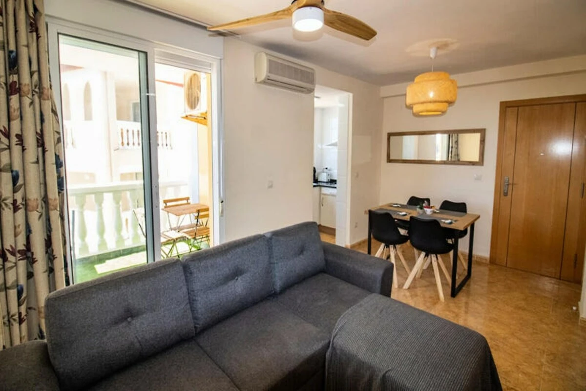 Wo die mediterrane Brise auf die raue Schönheit der Sierra de Irta trifft, bietet dieses charmante Apartment in Alcocebre einen ruhigen Rückzugsort für Familien und Freunde. Genießen Sie jeden Morgen den atemberaubenden Blick auf Meer und Berge und lassen Sie sich von der friedlichen Umgebung zu einem entspannten Urlaub verzaubern. In einem ruhigen Vorort gelegen, vereint diese Unterkunft Komfort und Natur auf ideale Weise und lädt zum Entspannen und Erkunden in Ihrem eigenen Tempo ein. Das geschmackvoll eingerichtete Apartment erstreckt sich über 70 m² und bietet Platz für bis zu sechs Gäste. Es verfügt über zwei gemütliche Schlafzimmer, ein geräumiges Wohnzimmer mit Klimaanlage und eine voll ausgestattete offene Küche mit modernen Geräten, darunter ein Cerankochfeld, ein Kühlschrank und eine Kaffeemaschine. Treten Sie hinaus auf die private Terrasse oder den Balkon – ideal für den Morgenkaffee oder den Sonnenuntergang. Der Gemeinschaftspool und das Kinderbecken bieten Spaß und Entspannung für alle Altersgruppen, während Annehmlichkeiten wie WLAN, eine Waschmaschine und Ventilatoren für einen angenehmen Aufenthalt sorgen. Nur 350 Meter entfernt liegt der beeindruckende Naturpark Sierra de Irta, ein Paradies für Wanderer und Naturliebhaber. Für Strandliebhaber ist der Felsenstrand Cala Blanca nur 370 Meter entfernt, und die Sandstrände von Las Fuentes erreichen Sie nach einem kurzen Spaziergang von 900 Metern. Der nahegelegene Spar-Supermarkt und das lebhafte Stadtzentrum von Alcocebre, nur 2 km entfernt, bieten Komfort und lokalen Charme. Ob Sie Küstenwanderwege erkunden, frische Meeresfrüchte genießen oder einfach nur die Sonne tanken möchten – alles, was Sie brauchen, ist in unmittelbarer Nähe.