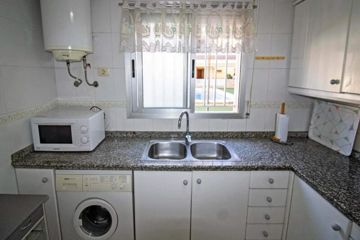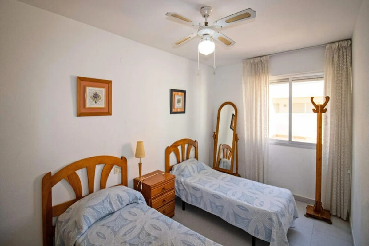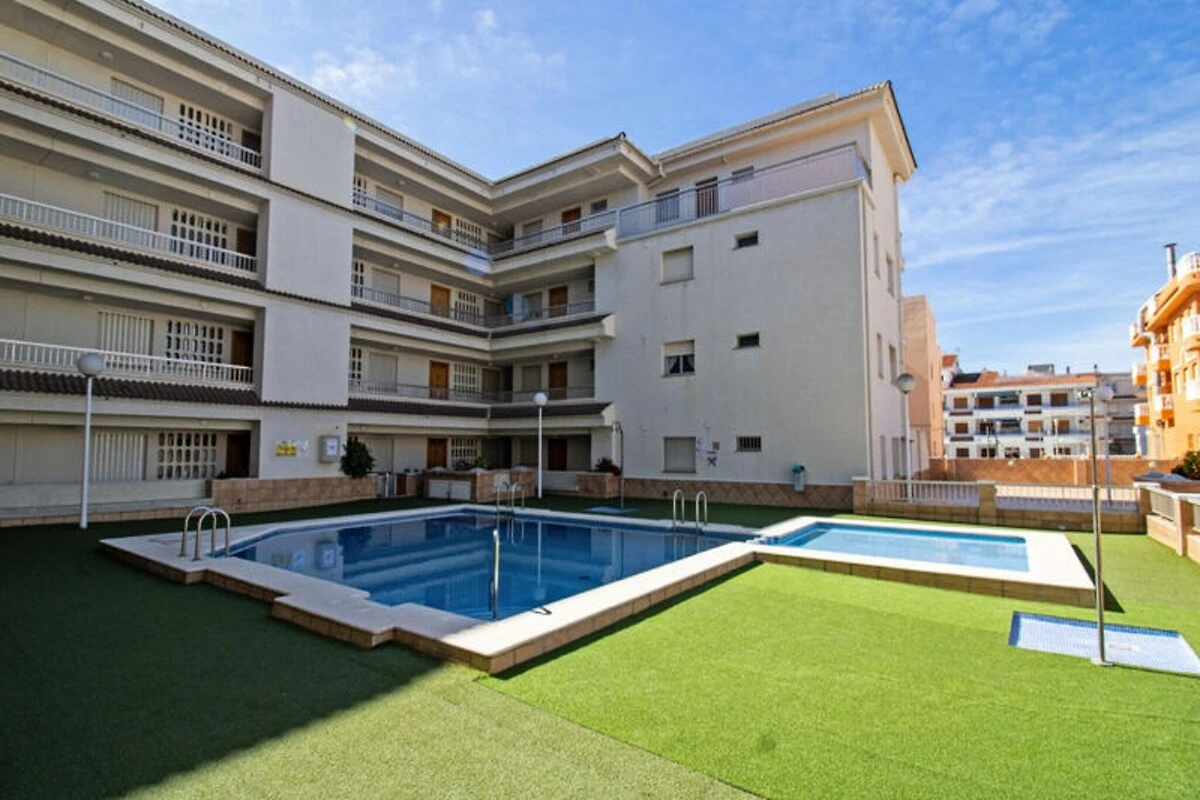 Das 81 Quadratmeter große Apartment ist komfortabel und praktisch gestaltet. Die separate Küche ist mit modernen Geräten ausgestattet, darunter ein Cerankochfeld, Kühlschrank, Mikrowelle, Backofen, Gefrierschrank, Waschmaschine, Geschirrspüler, Kaffeemaschine und Toaster – so können Sie mühelos Mahlzeiten für Familie und Freunde zubereiten. Das erste Schlafzimmer verfügt über zwei Einzelbetten, einen Einbauschrank und einen Deckenventilator, während das zweite Schlafzimmer mit einem gemütlichen Doppelbett, einem Kleiderschrank und einem Deckenventilator ausgestattet ist. Ein geräumiges Badezimmer mit Badewanne lädt nach einem erlebnisreichen Tag zum Entspannen ein. Das Wohn-/Esszimmer mit bequemem Sofa und Fernseher öffnet sich zur weitläufigen Terrasse, von der aus man einen teilweisen Meerblick genießt – die perfekte Kulisse für Mahlzeiten im Freien oder einfach zum Genießen des mediterranen Flairs. Auch die Lage des Apartments ist unschlagbar. Supermärkte, Restaurants und Unterhaltungsmöglichkeiten befinden sich in unmittelbarer Nähe – alles, was Sie brauchen, ist bequem erreichbar. Ob Strandspaziergang, erfrischendes Bad im Pool oder ein Abendessen bei Sonnenuntergang auf der Terrasse: Diese Unterkunft verspricht einen unvergesslichen Urlaub an der Küste. Ideal für Familien oder Paare, die Ruhe und gleichzeitig die Annehmlichkeiten der Umgebung suchen: Dieses Strandparadies ist Ihr Tor zu den schönsten Seiten der Costa del Azahar.